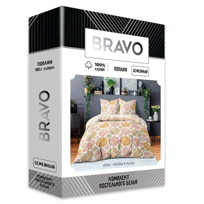 Купить Постельное белье семейное BRAVO поплин Алма, хлопок, 2 пододеяльника