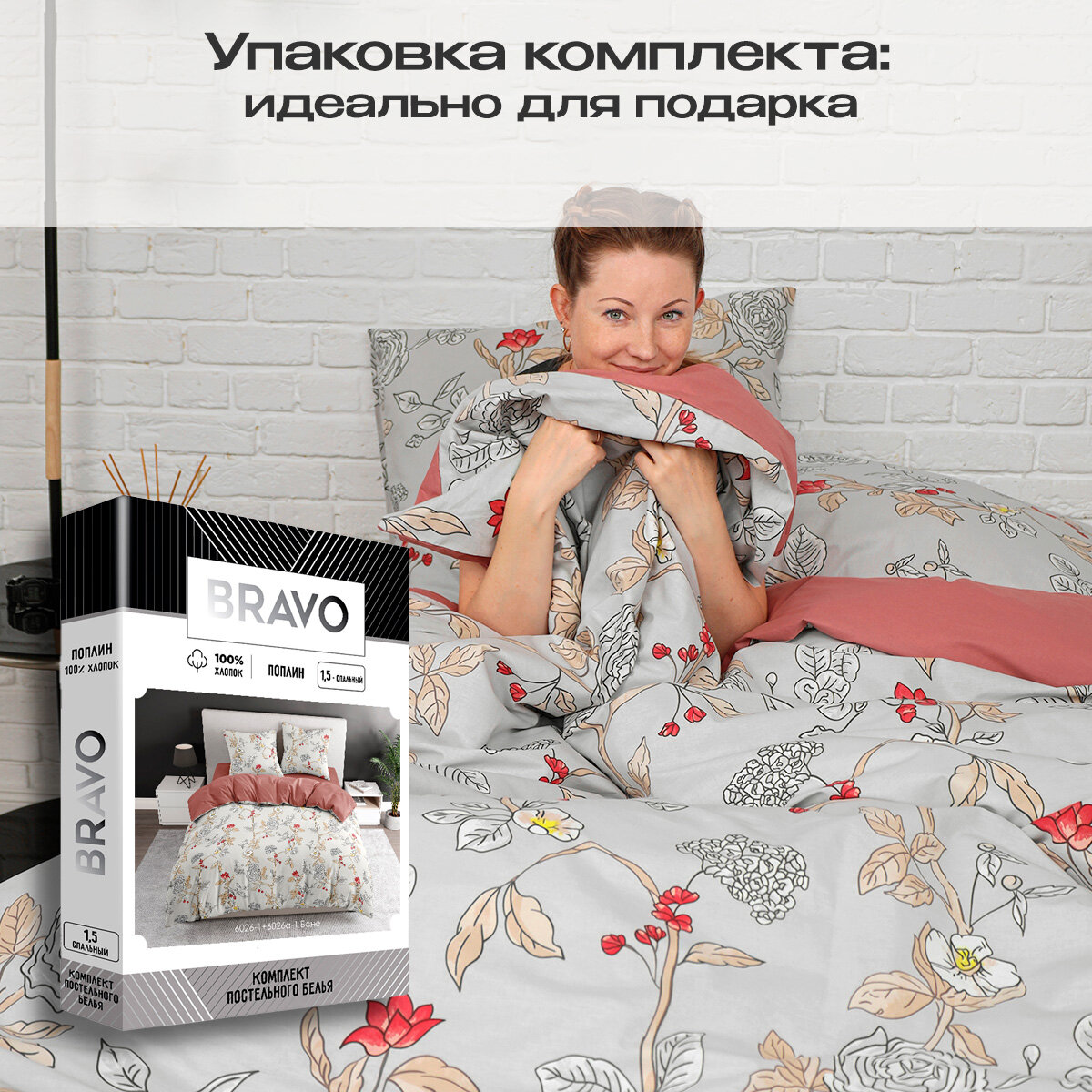 Постельное белье 1,5 спальный размер BRAVO поплин Фарфала, хлопок