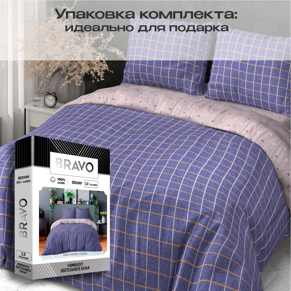 Постельное белье евро BRAVO поплин Кейдж/ хлопок / наволочки 70*70