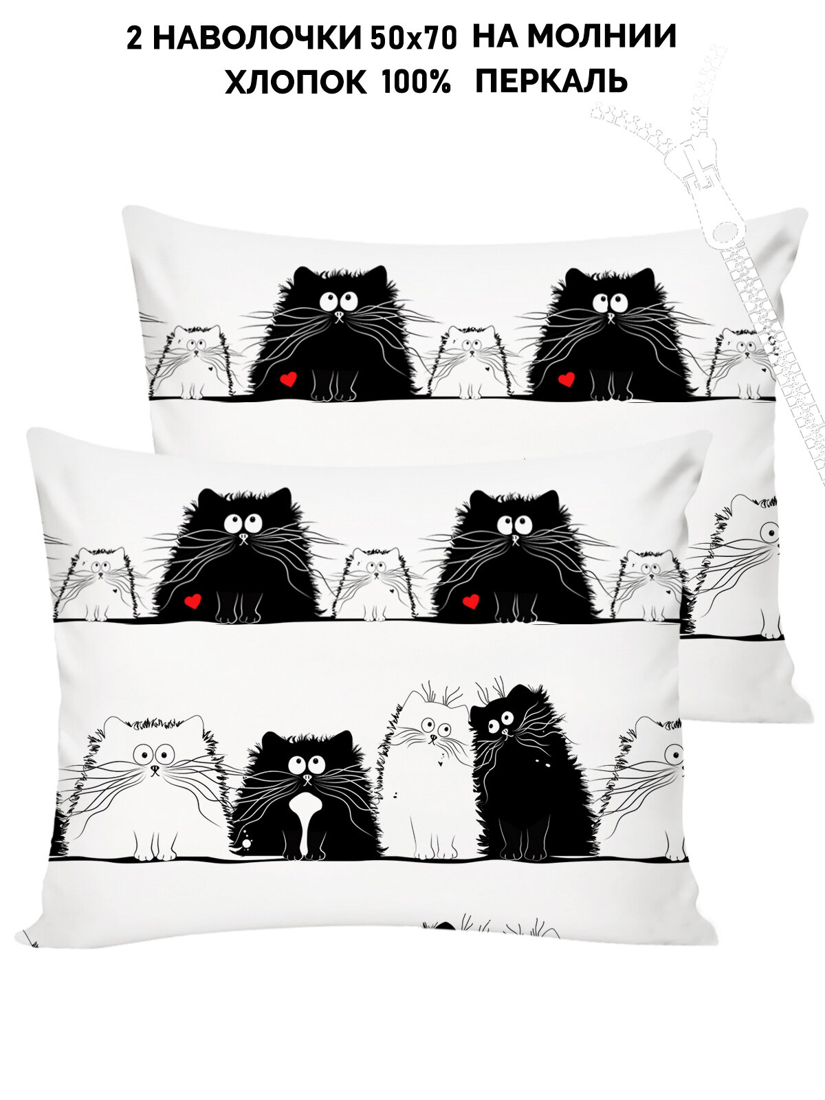Наволочка 2шт на молнии 70х70 см Сказка "Kitties", ткань перкаль, 100% хлопок