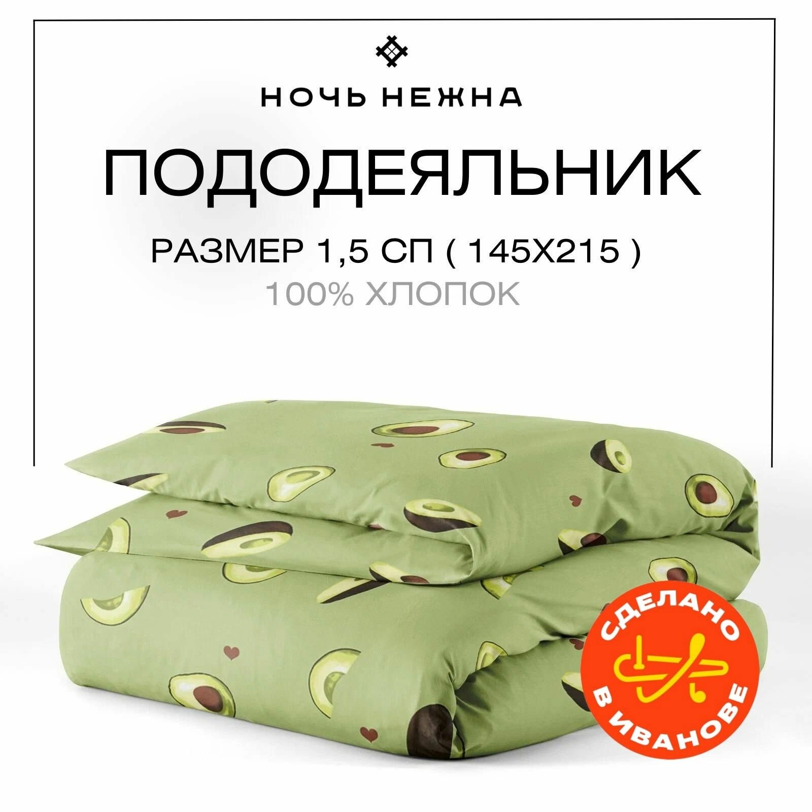 СохранитьПододеяльник 1 5 спальный, 145х215 см, Ночь Нежна Авокадо, бязь, 100% хлопок интересное: