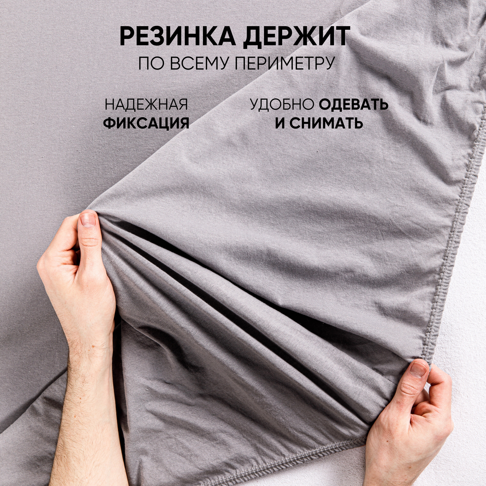 Простынь на резинке однотонная 200х200 см Ночь Нежна Серая, трикотажная, 100% хлопок, ткань кулирка