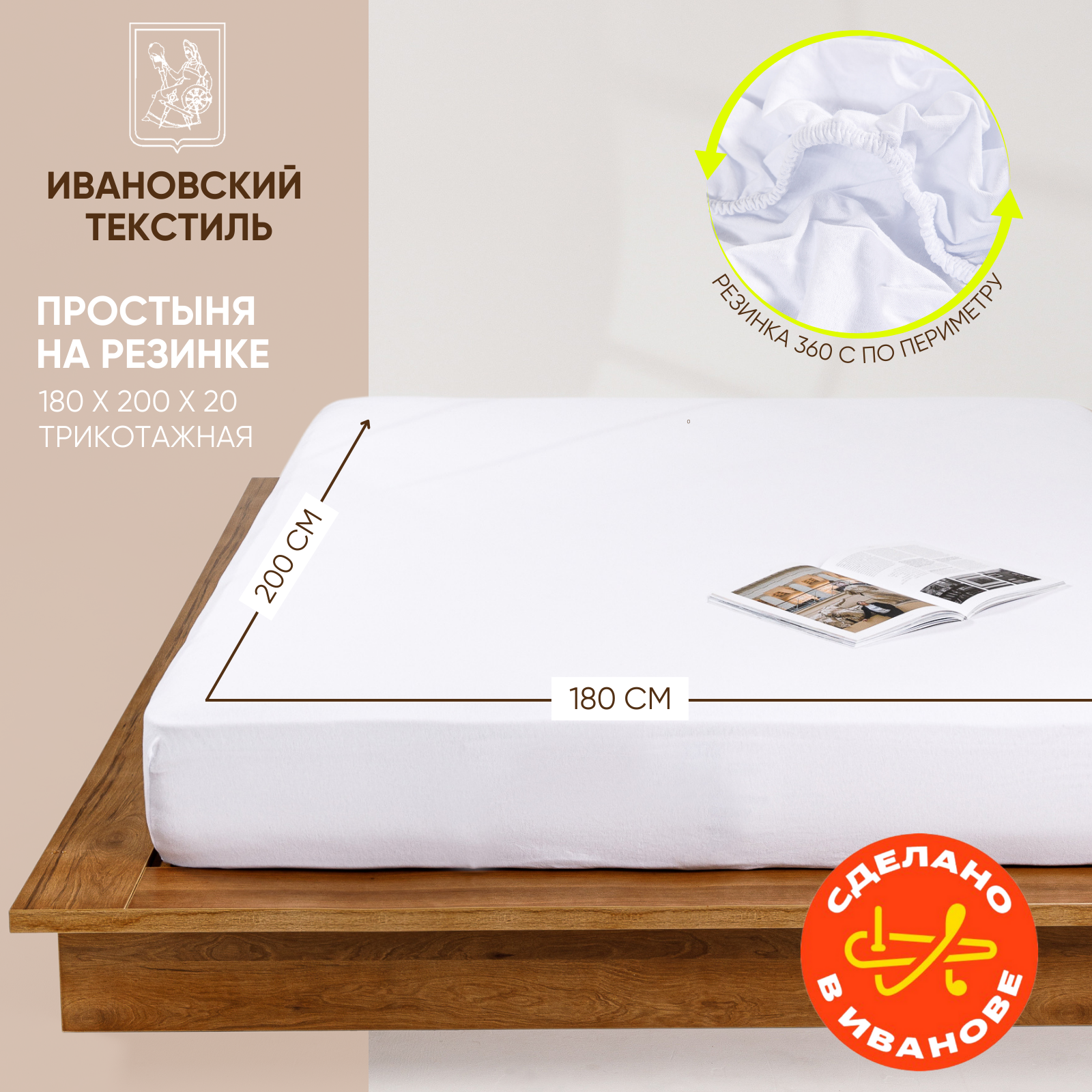 СохранитьПростынь на резинке однотонная 180х200 см Ночь Нежна Белая, трикотажная, 100% хлопок, ткань кулирка интересное: