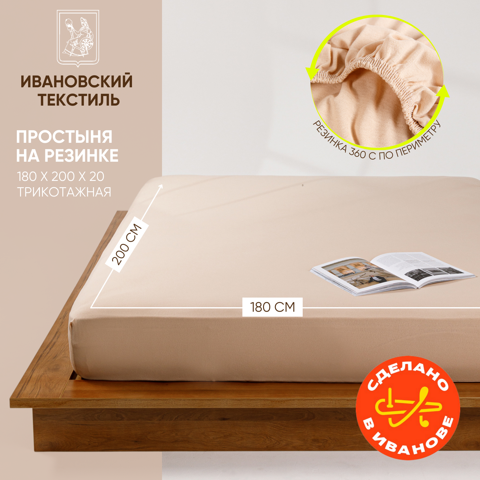 СохранитьПростынь на резинке однотонная 180х200 см Ночь Нежна Бежевая, трикотажная, 100% хлопок, ткань кулирка интересное: