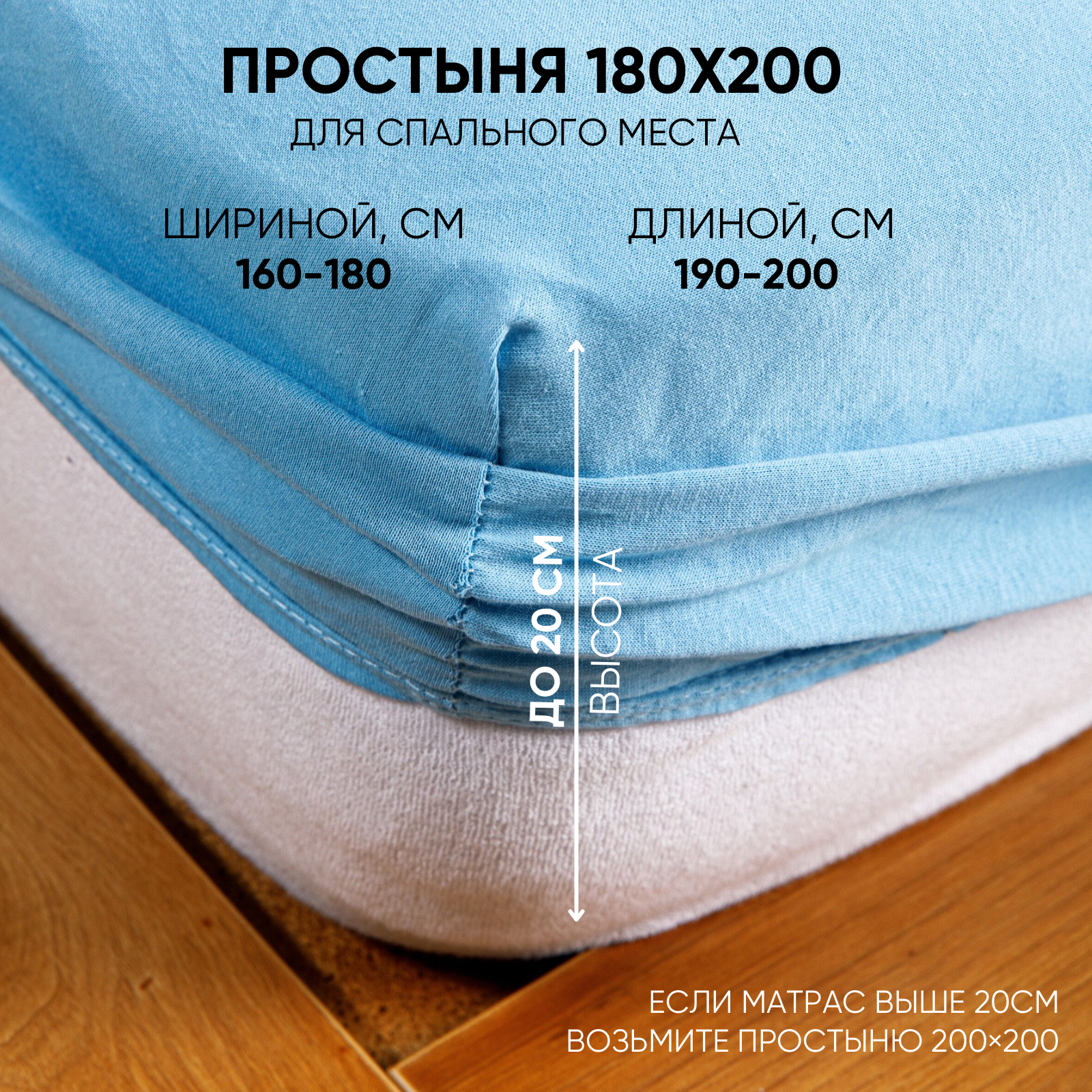 СохранитьПростынь на резинке однотонная 180х200 см Ночь Нежна Голубая, трикотажная, 100% хлопок, ткань кулирка интересное: