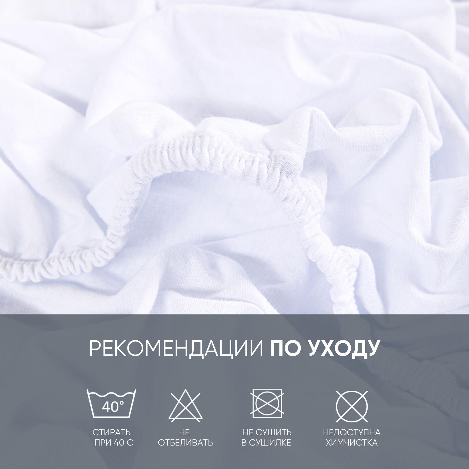 Простынь на резинке однотонная 180х200 см Ночь Нежна Белая, трикотажная, 100% хлопок, ткань кулирка