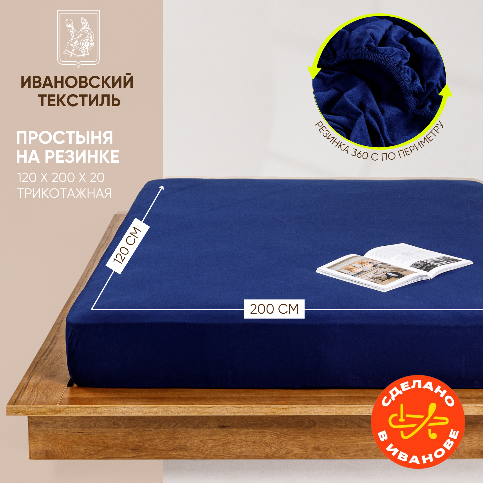 Купить Простынь на резинке однотонная 120х200 см Ночь Нежна Синяя, трикотажная, 100% хлопок, ткань кулирка