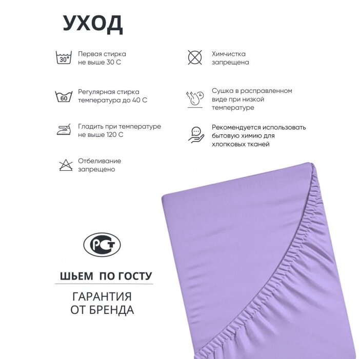 СохранитьПростынь на резинке 160х200 см, Urban Family (аналог икеа) Лавандовый, перкаль, 100% хлопок интересное: