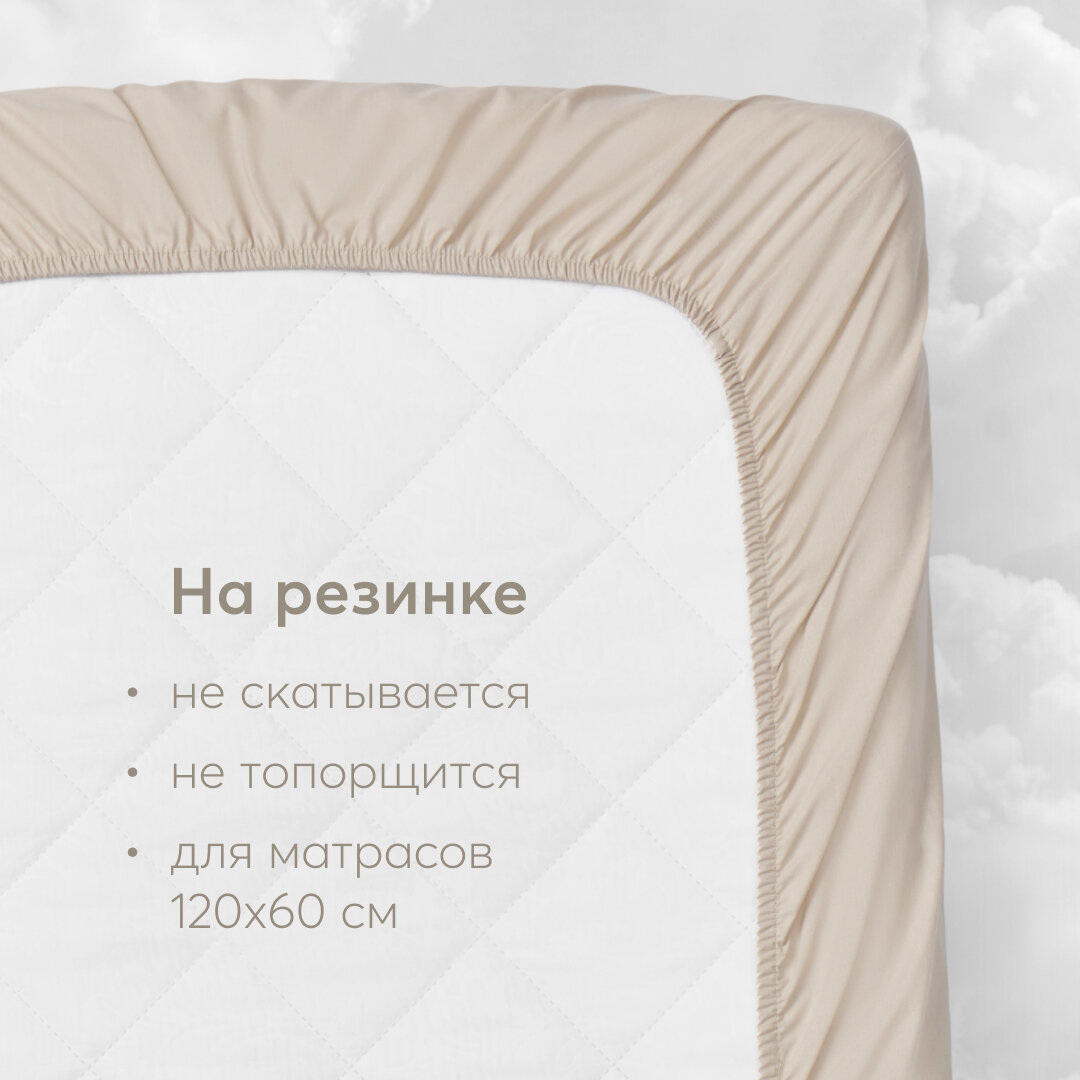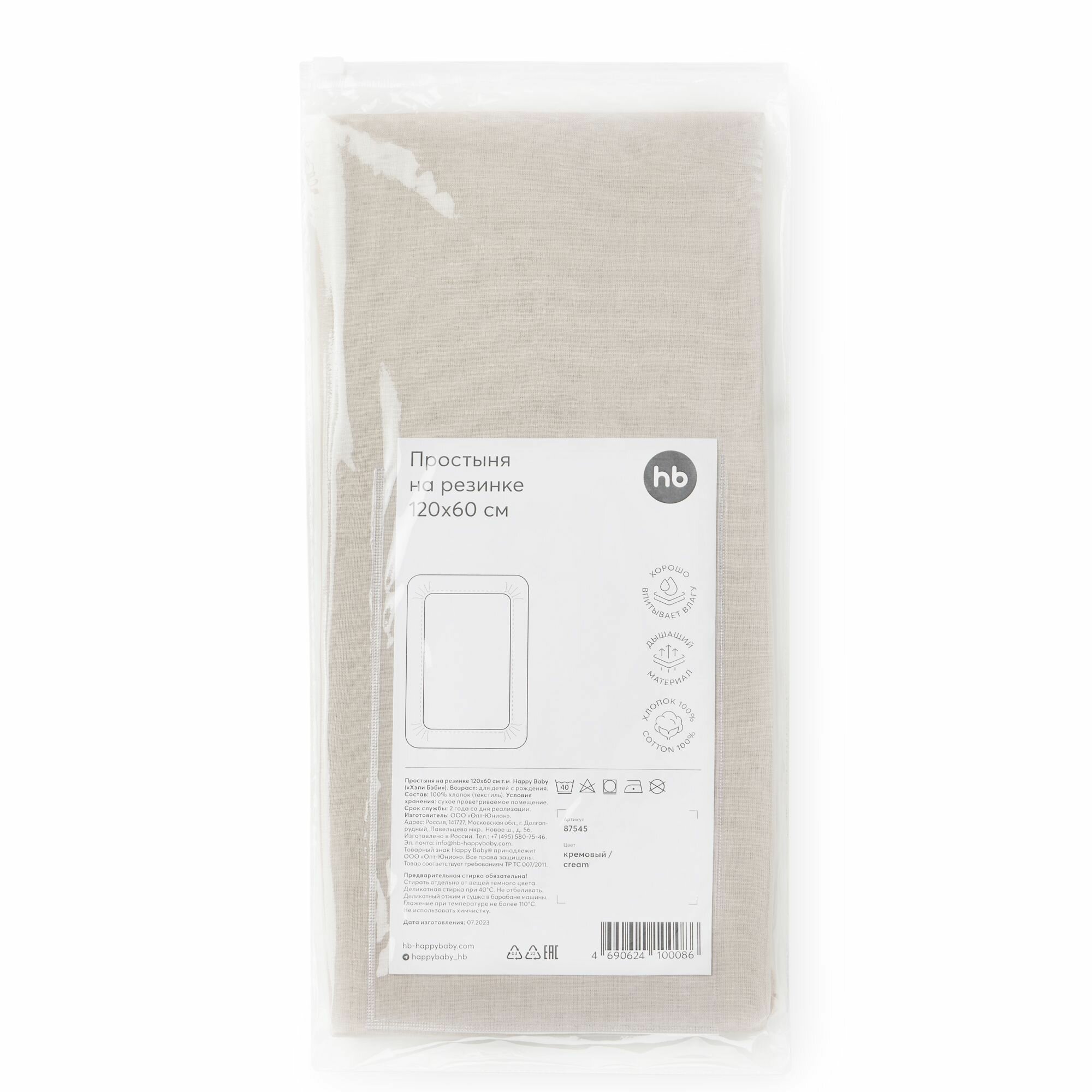 Купить 87545, Простыня на резинке Happy Baby, постельное белье детское, простынь на резинке в кроватку, размер 120х60, кремовая
