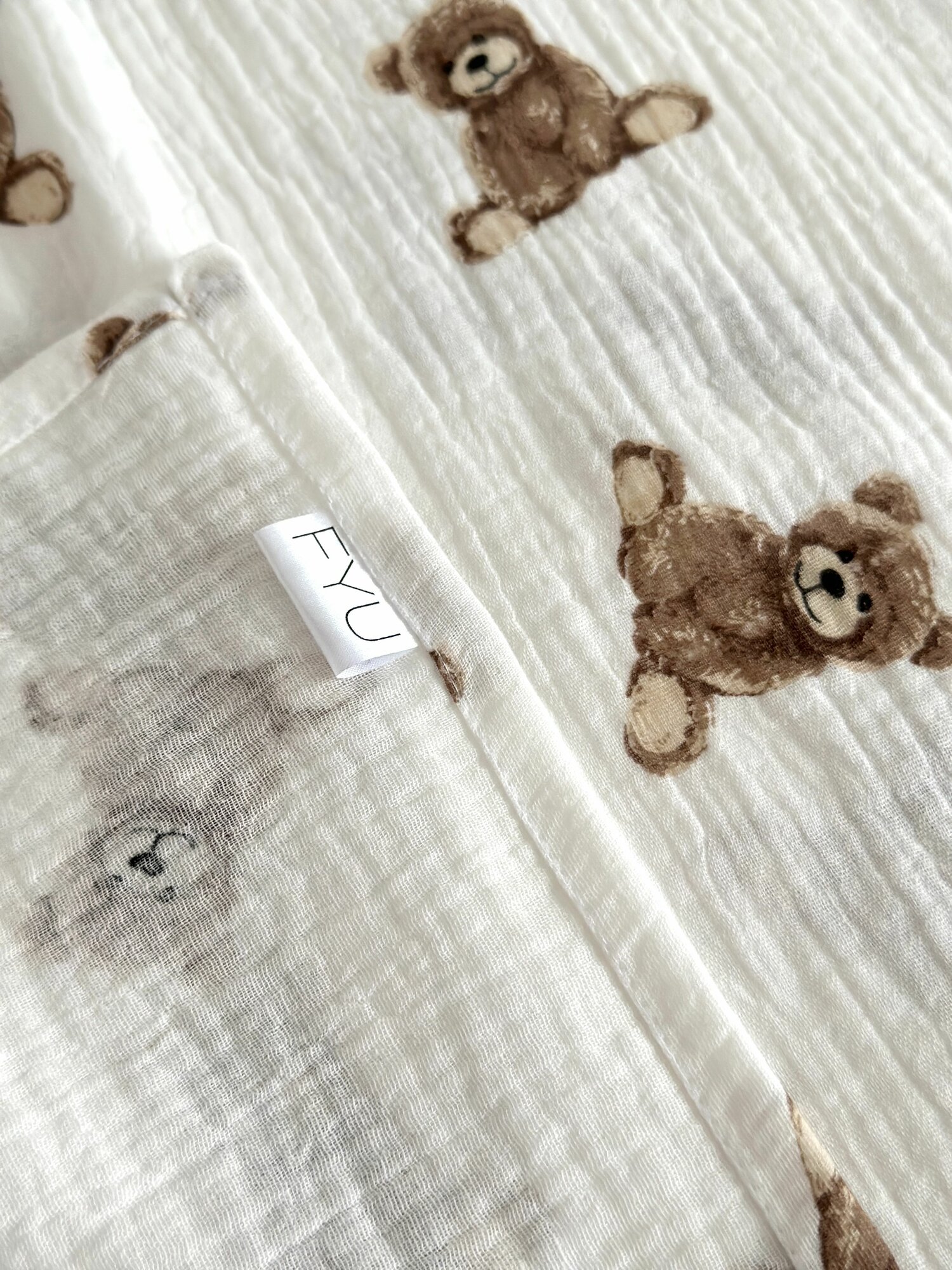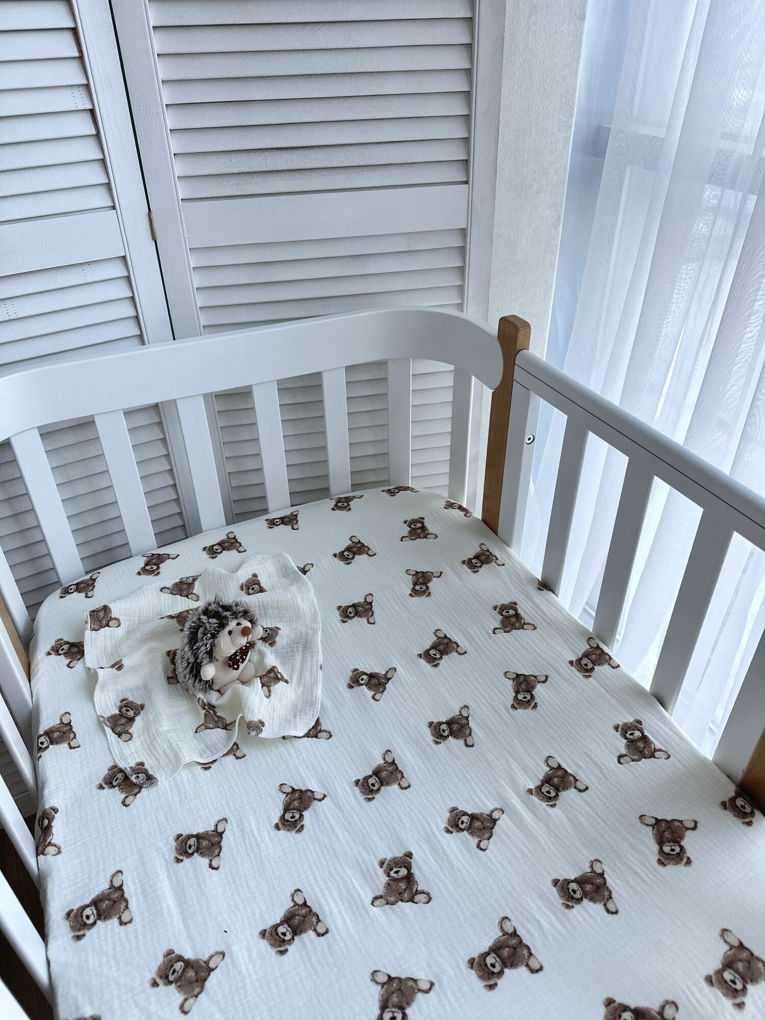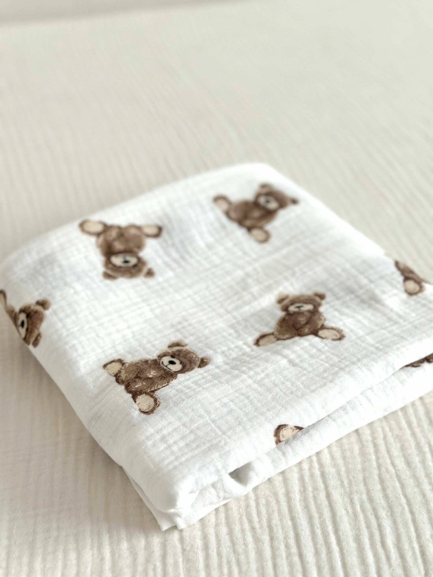 Купить Простынь муслиновая 140х200 1,5 спальная Мишки на белом фоне