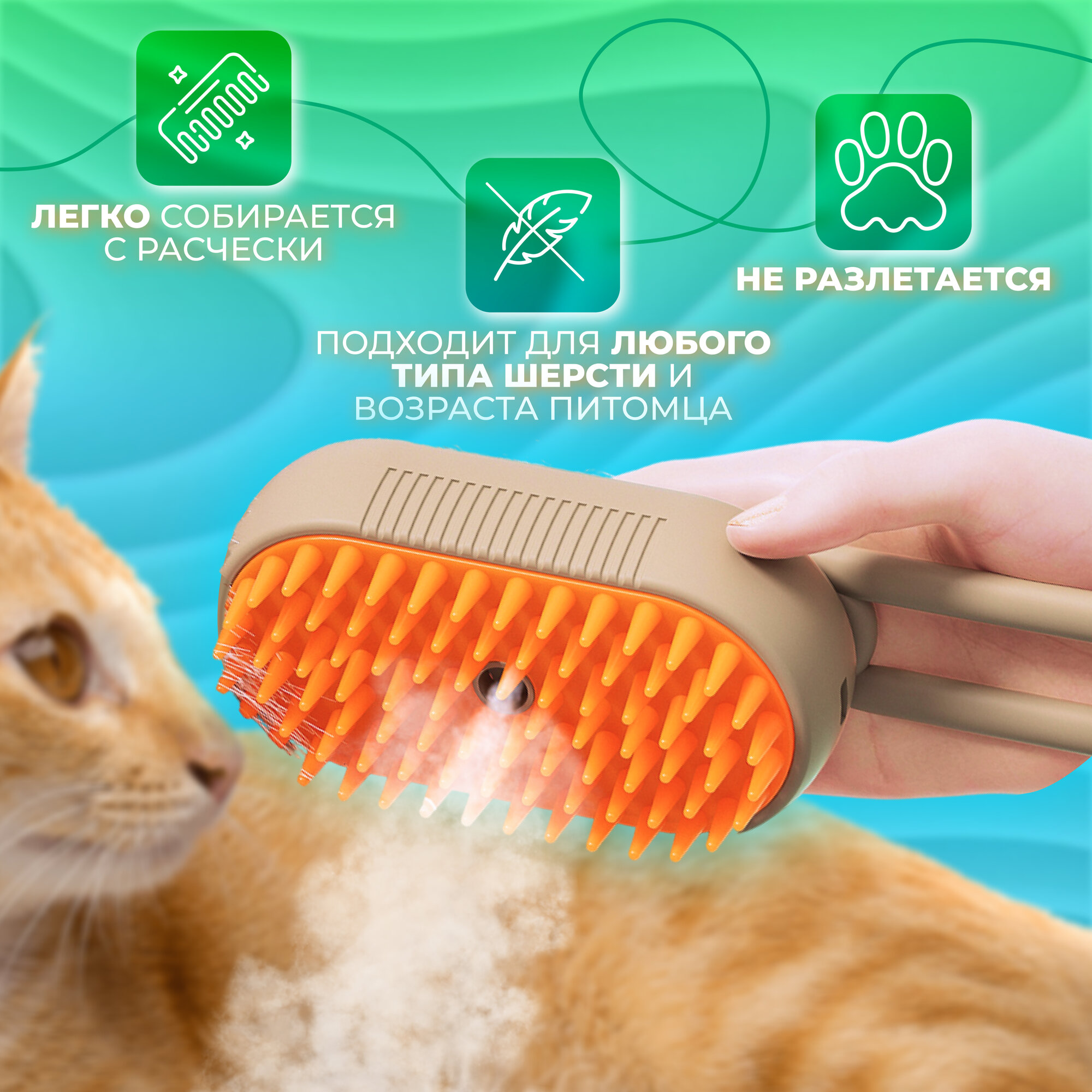 Паровая щетка для кошек, чесалка для кошек с паром, расческа для кошек, с ручкой интересное: