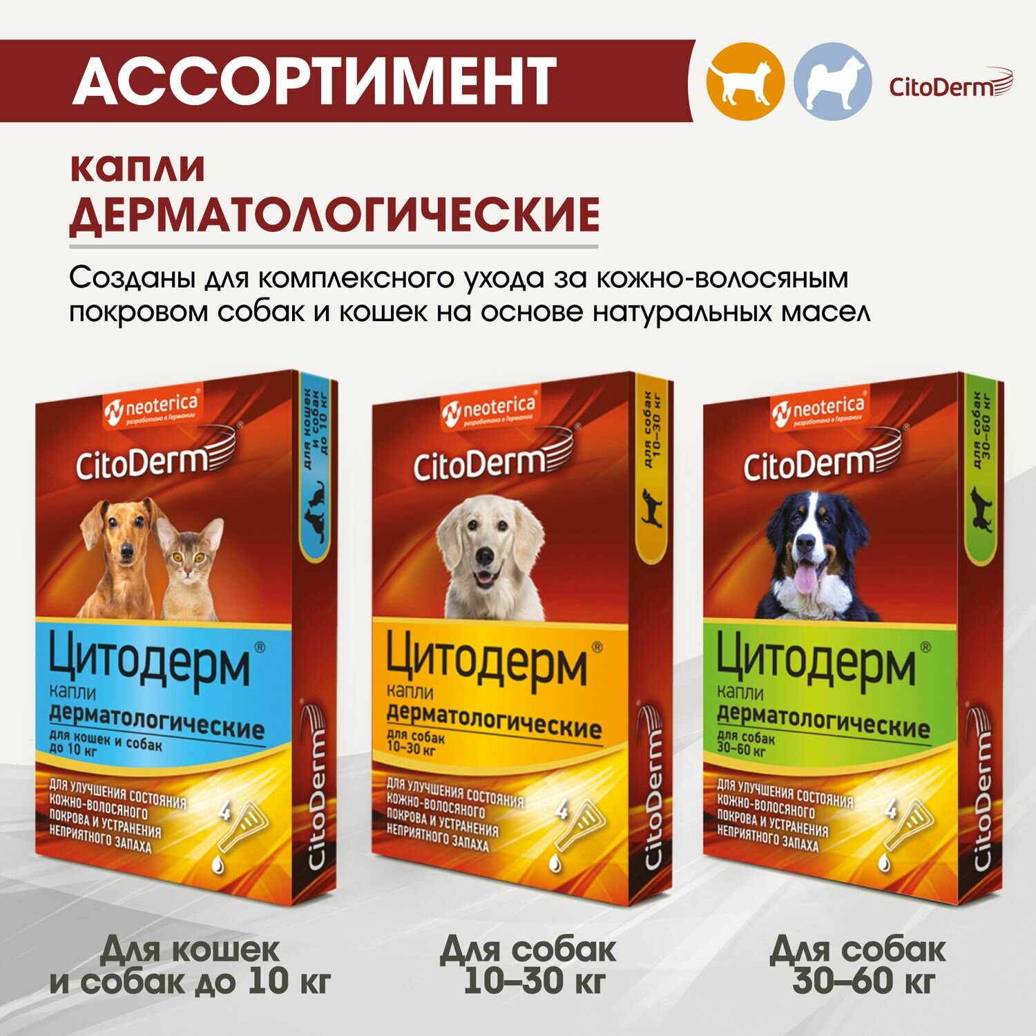 Капли Цитодерм дерматологические, для кошек и собак до 10 кг. (4 пипетки)