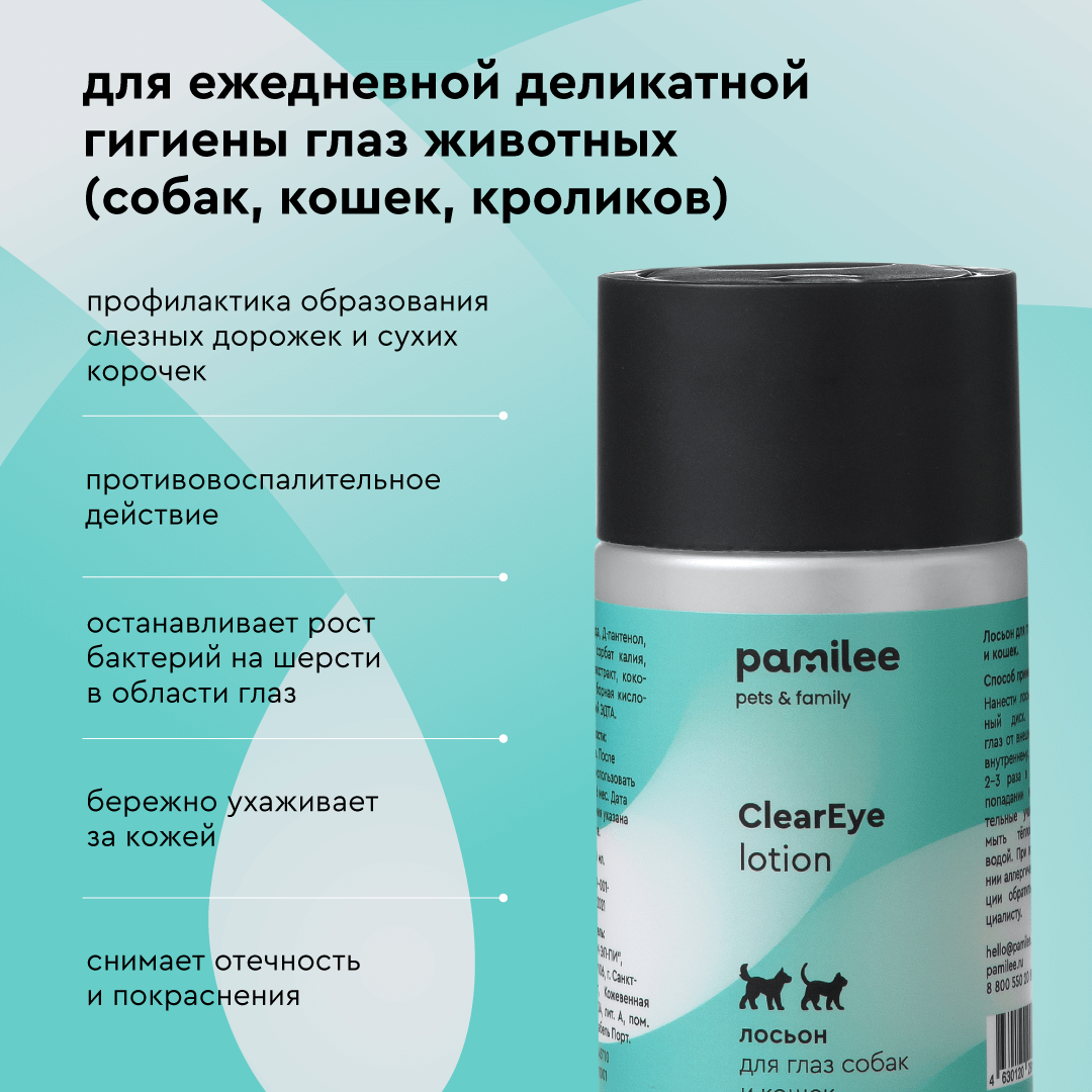 Лосьон Pamilee Clear Eye для глаз животных 100мл интересное: