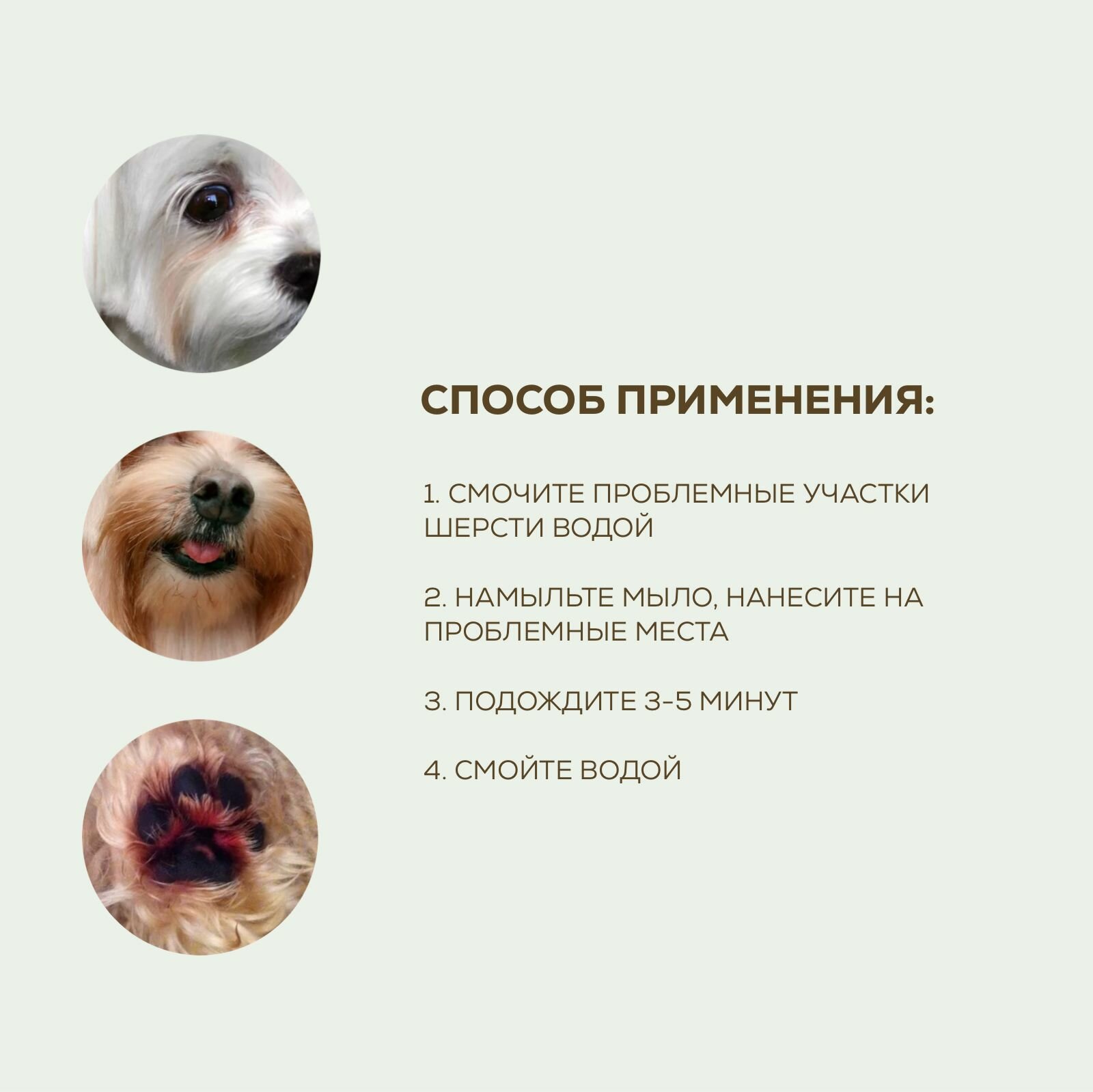 | Способ применения | Нанести на проблемные участки шерсти, подождать 3-5 минут, смыть водой |