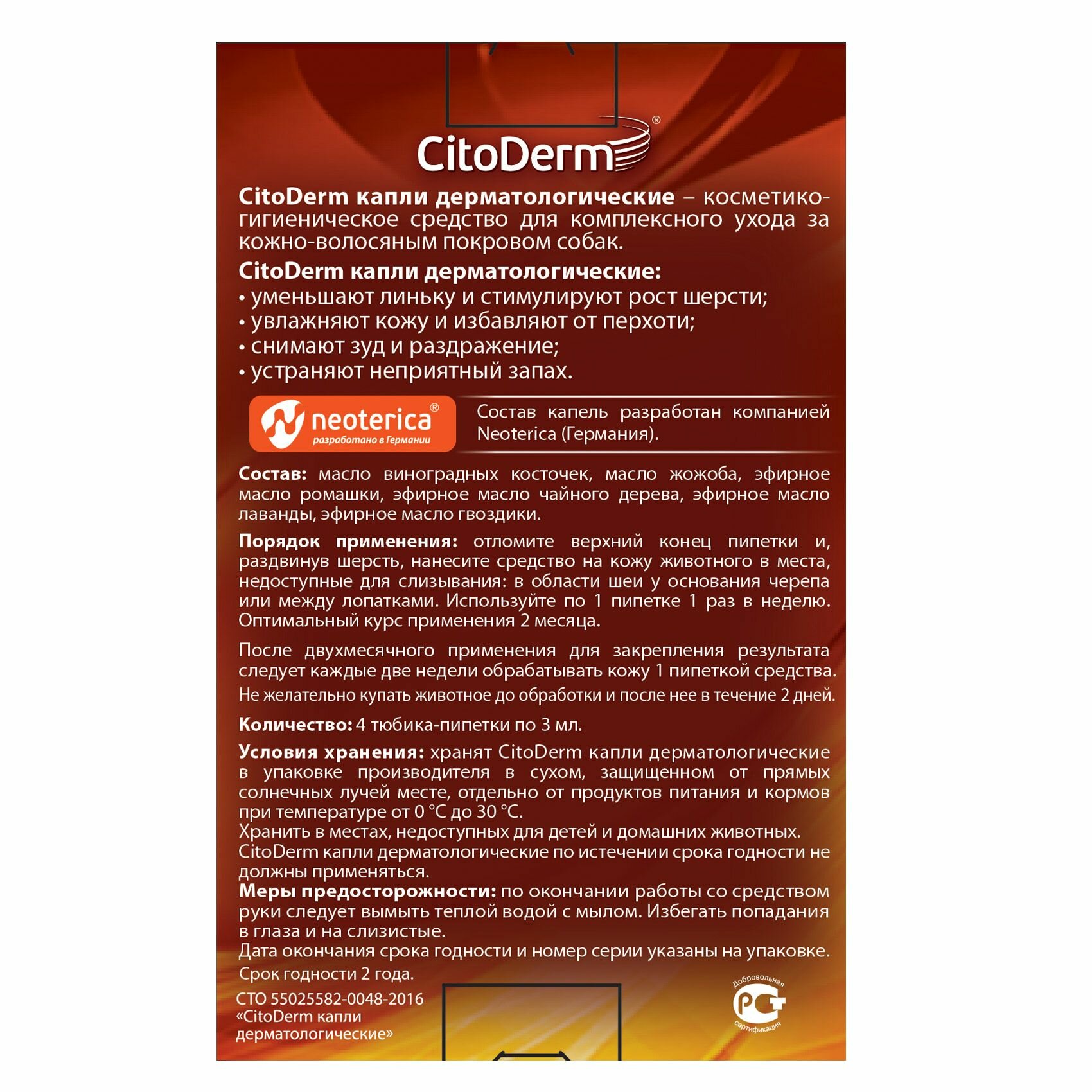 Цитодерм Капли дерматологические собак 3 мл 4 пипетки, упаковка