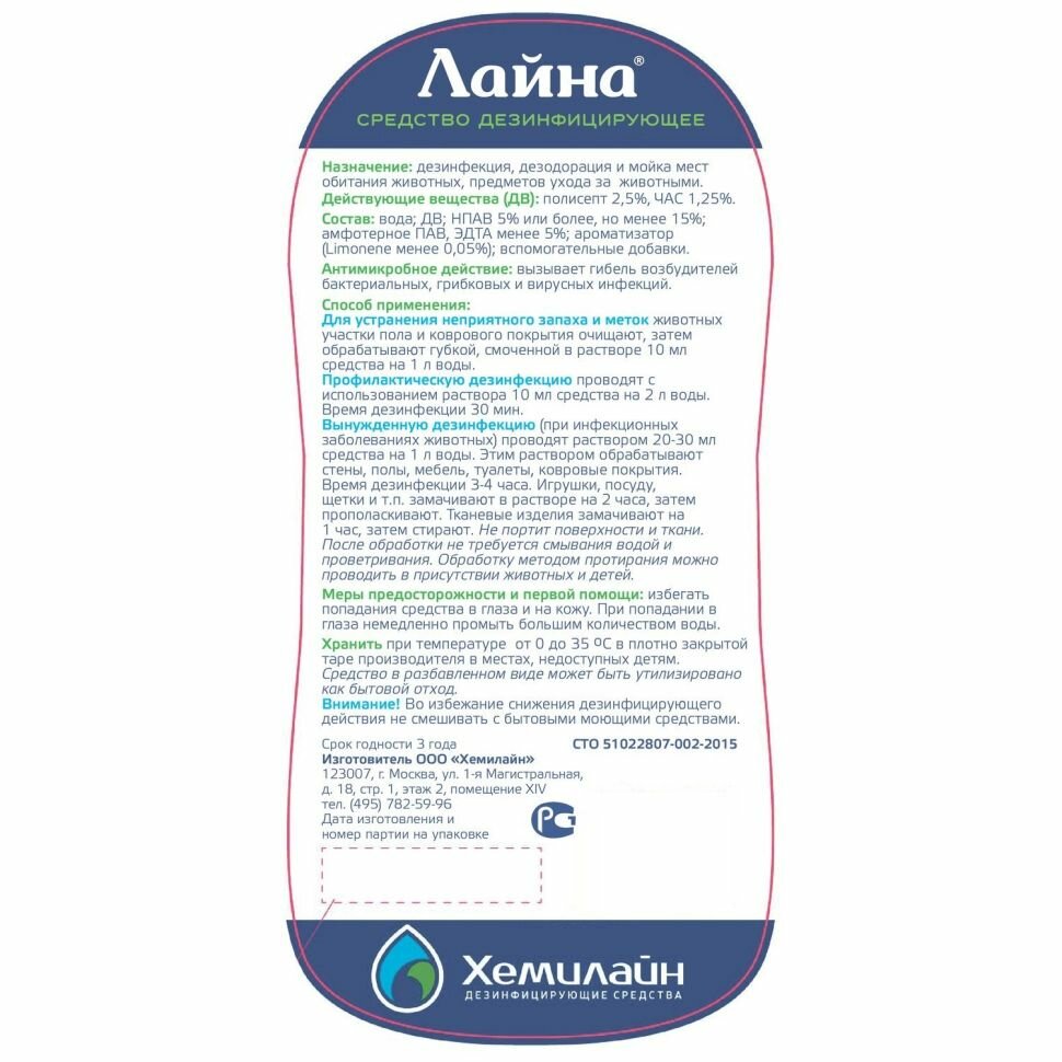 | Способ применения | Для профилактической дезинфекции добавьте один колпачок средства (10мл) на 1л воды и проведите влажную уборку. Последующего смыва водой не требуется. Подробное описание можно посмотреть на этикетке. |