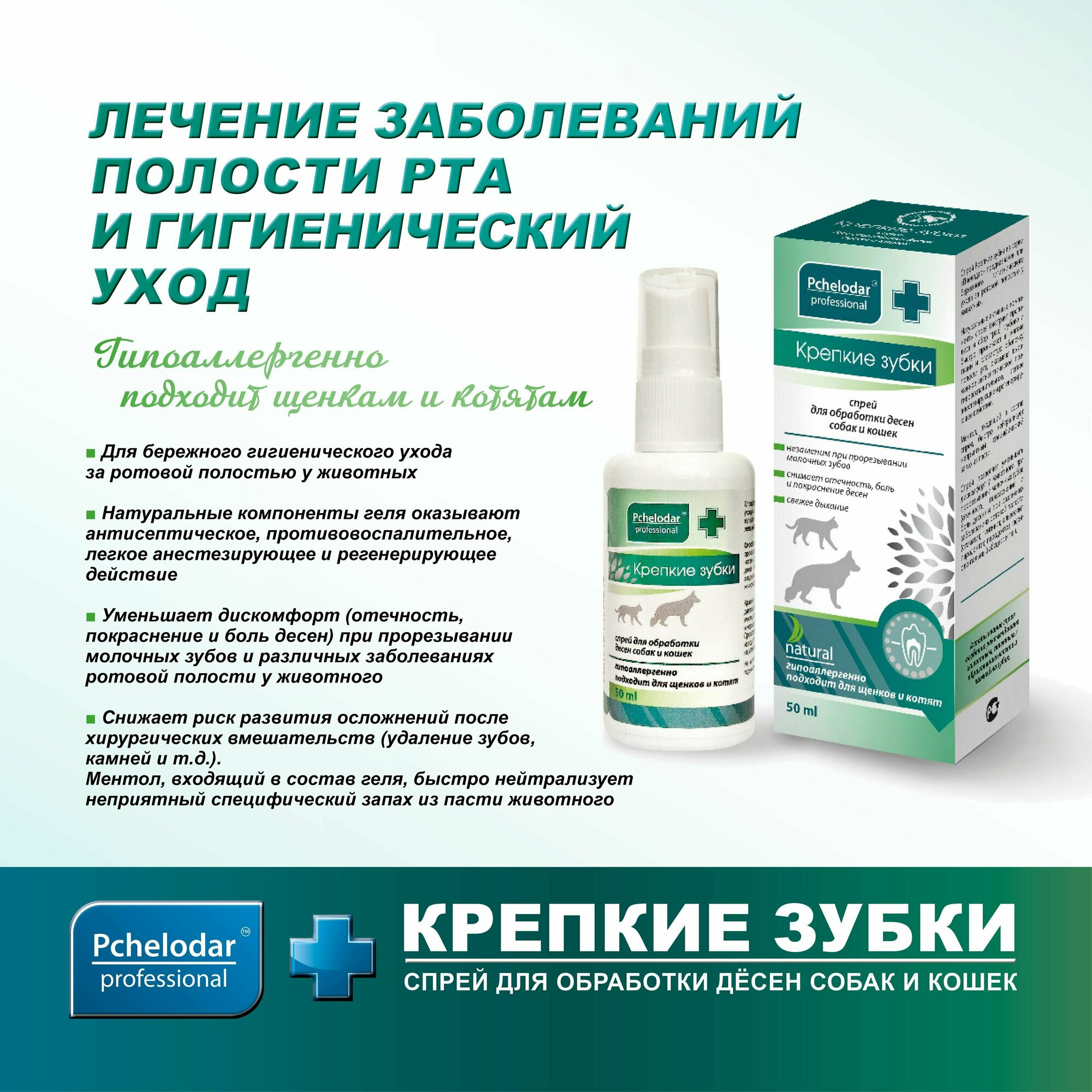 Крепкие зубки Средство для ухода за полостью рта собак и кошек, Спрей 50 мл для гигиены полости рта, Пчелодар