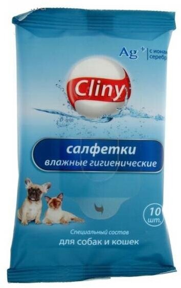 Cliny ® Салфетки влажные гигиенические для собак и кошек упаковка, 10 шт