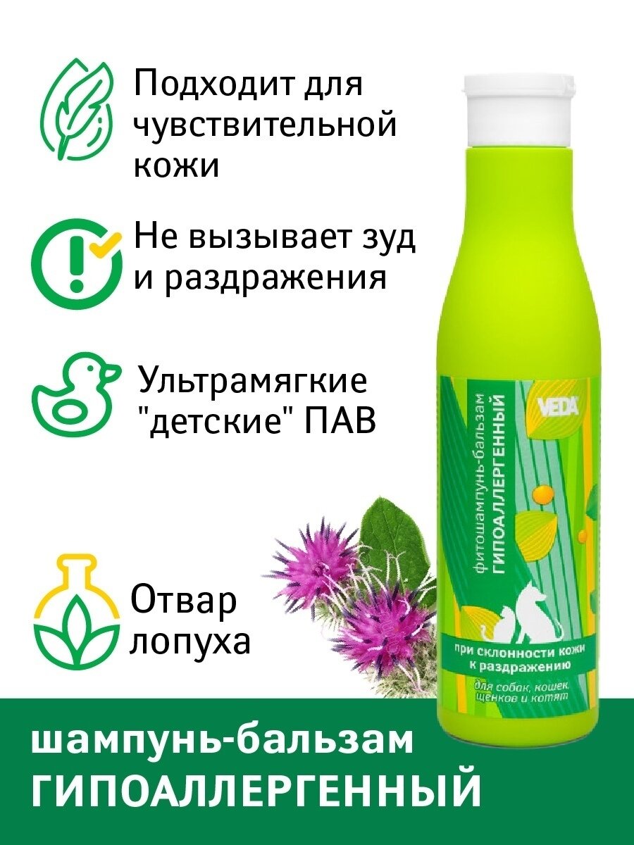 VEDA фитошампунь-бальзам для собак и кошек гипоаллергенный (250 мл) интересное: