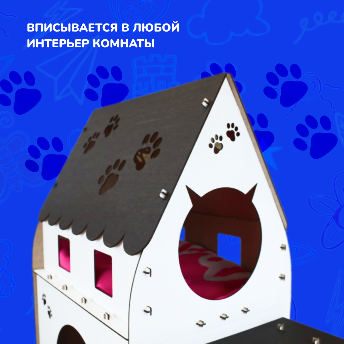 Домик для животных, кошек и собак мелких пород 2 яруса интересное: