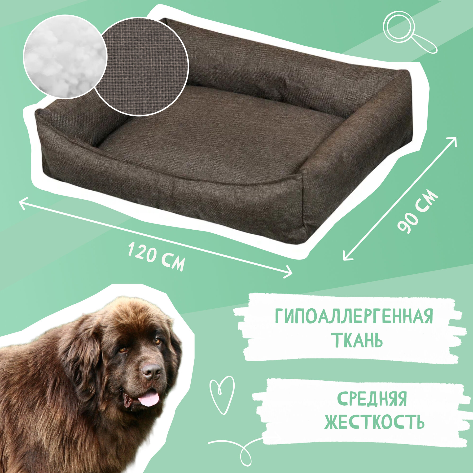 Лежанка для собаки со съёмным чехлом для крупных и средних пород,120x90 см интересное: