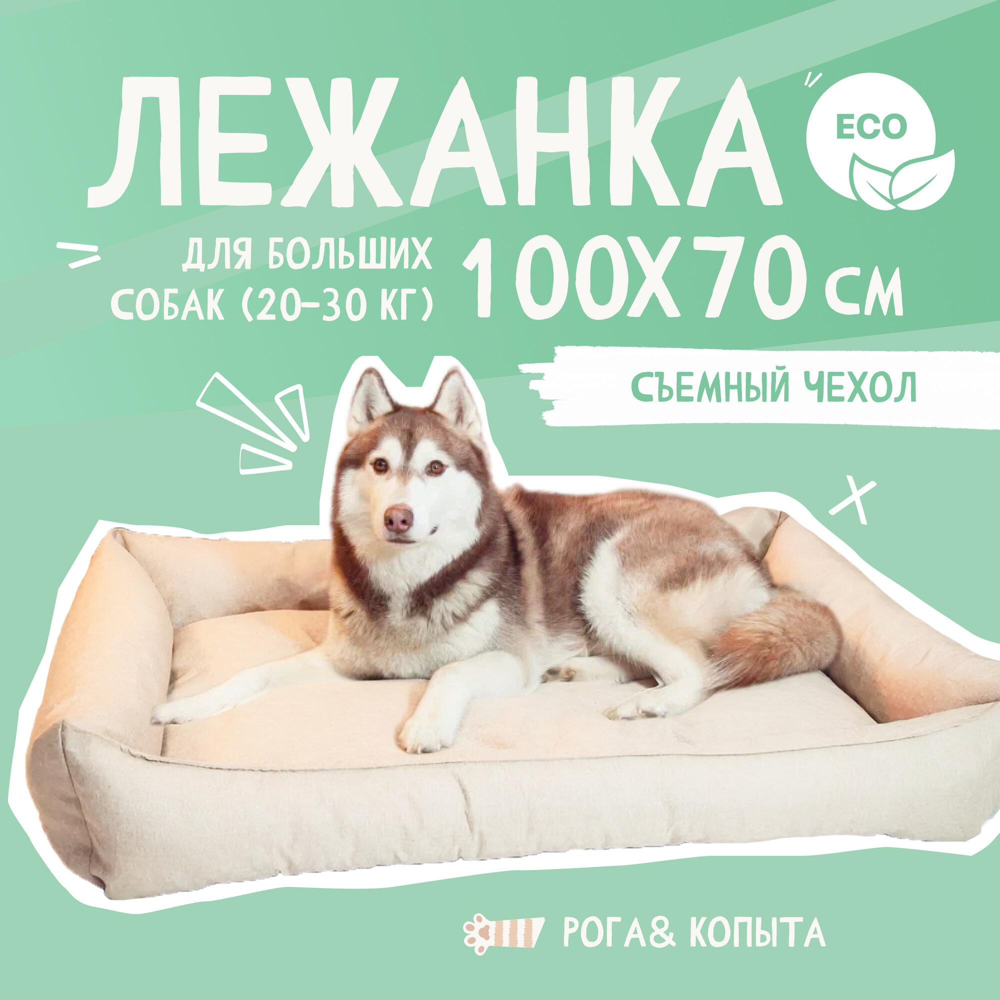 Лежанка для собаки, для крупных и средних пород, со съемным чехлом 90x70 см