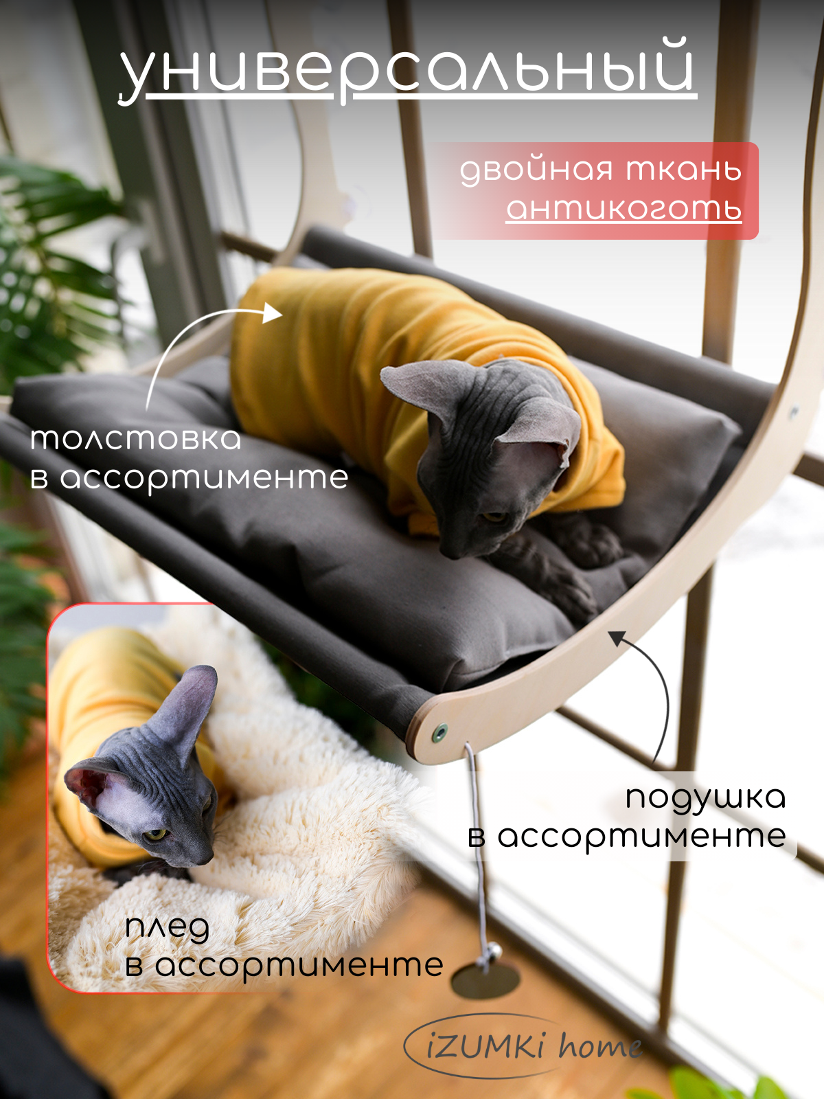 СохранитьПодвесной гамак для кошек на окно Добби серый интересное: