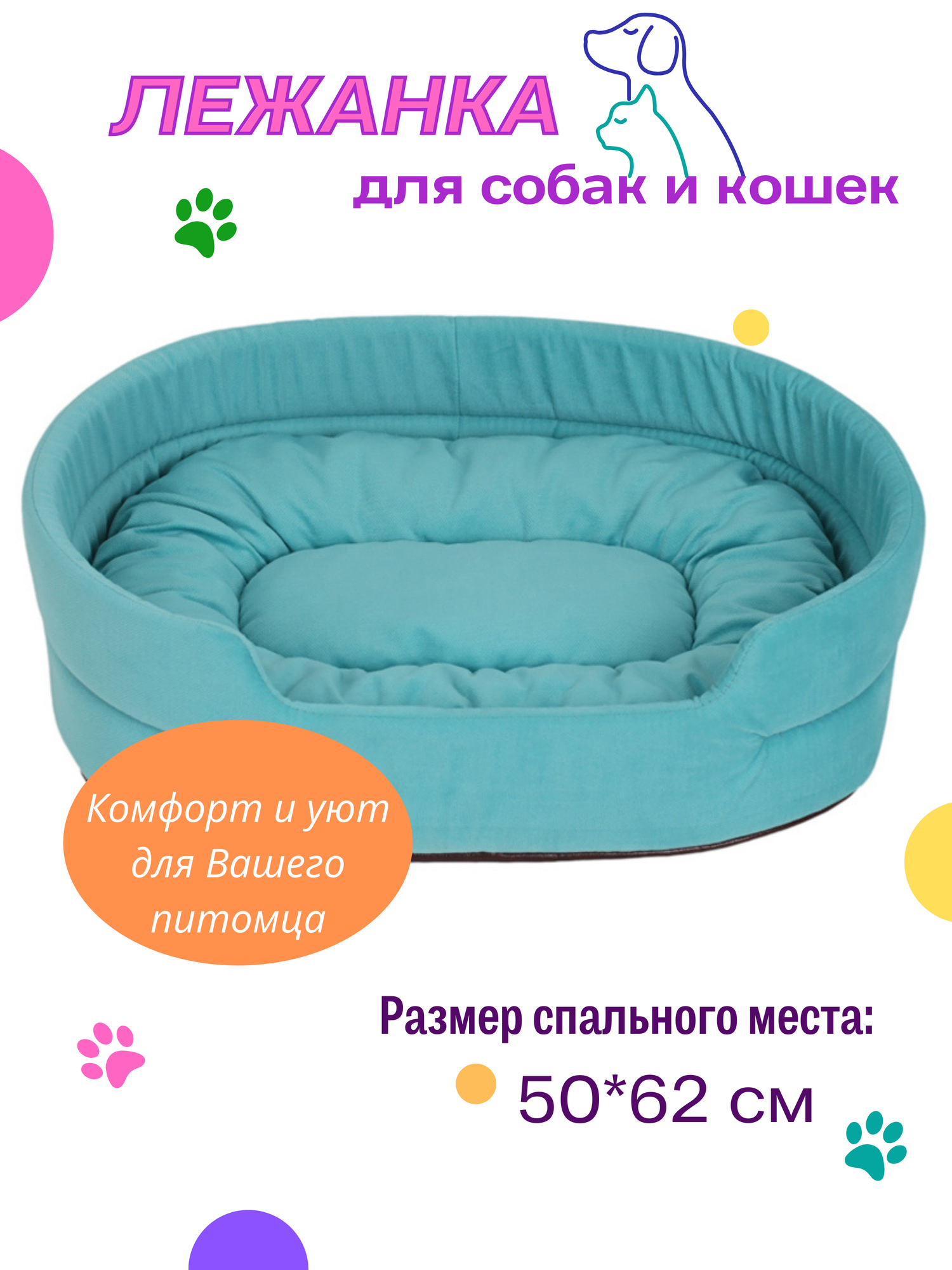 СохранитьЛежанка для кошек, для собак мелких и средних пород, лежак для животных, со съёмной подушкой, цвет: бирюзовый, 50x62 интересное: