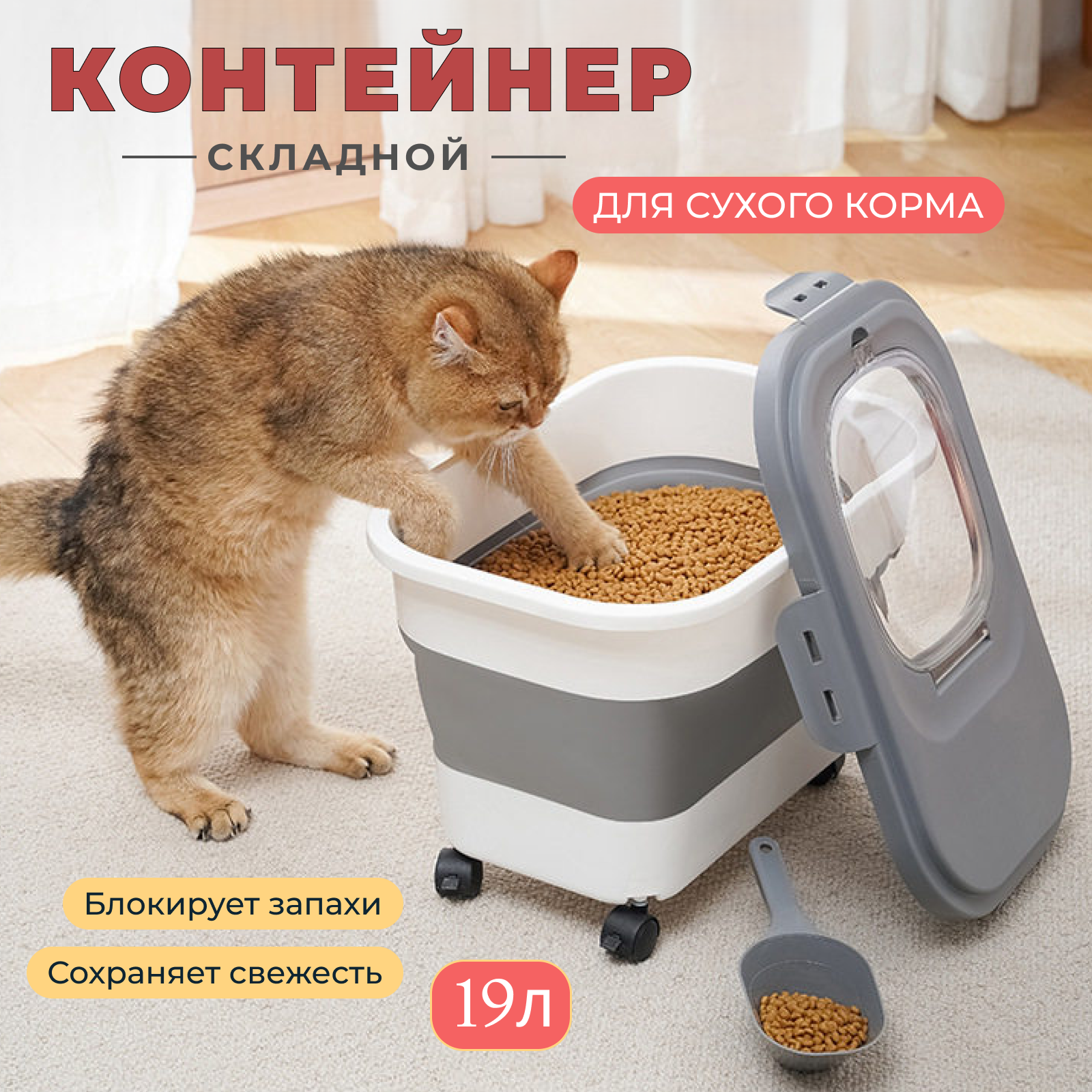 Контейнер складной для хранения сухого корма/Складное ведро для корма для собак,45х33х37,5см, серый, 25л интересное: