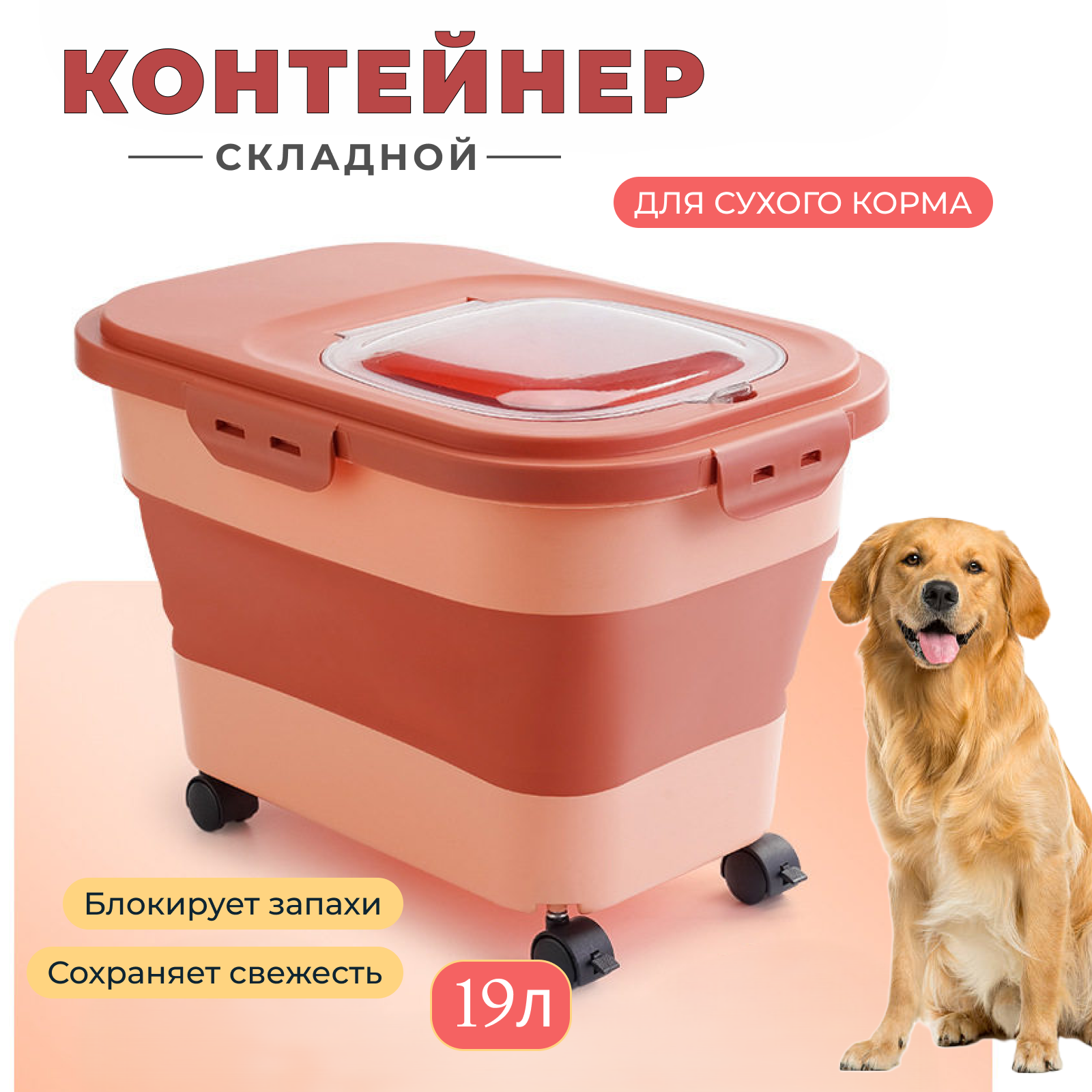 Контейнер складной для хранения сухого корма/Складное ведро для корма для собак,45х33х37,5см, розовый, 25л интересное: