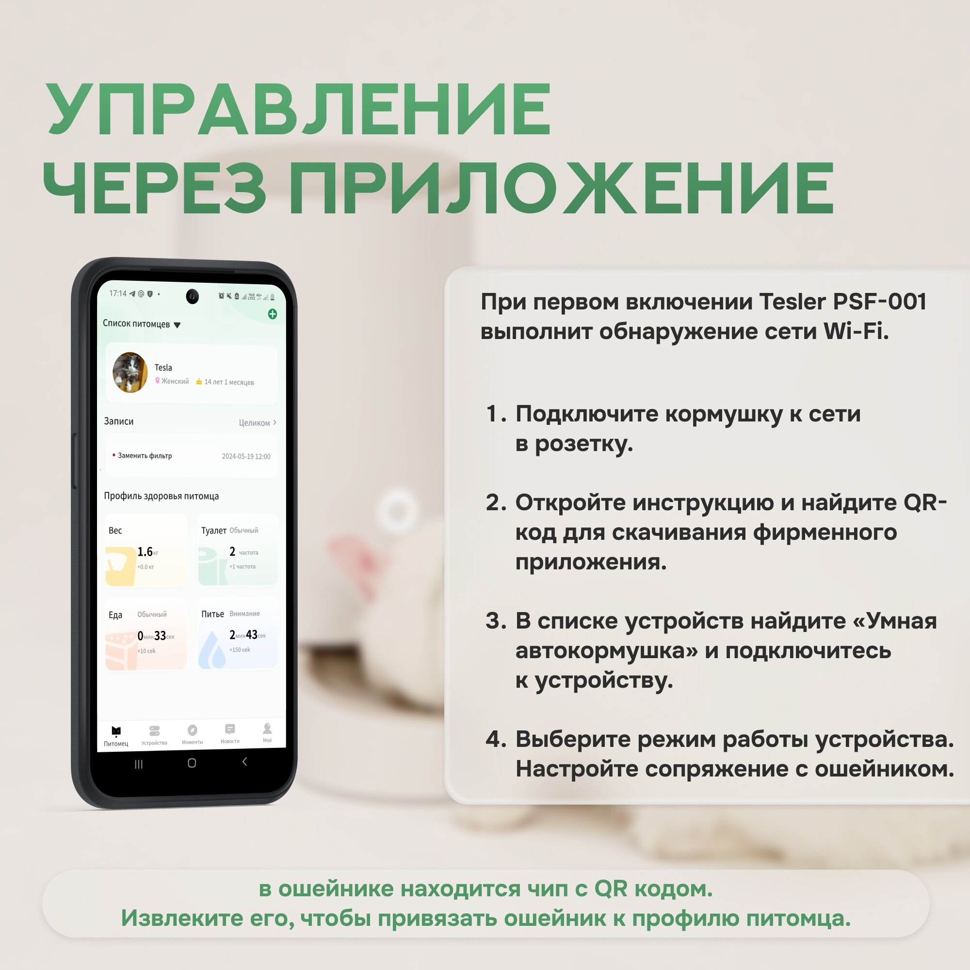Автоматическая кормушка для животных TESLER PSF-001 c Wi-Fi