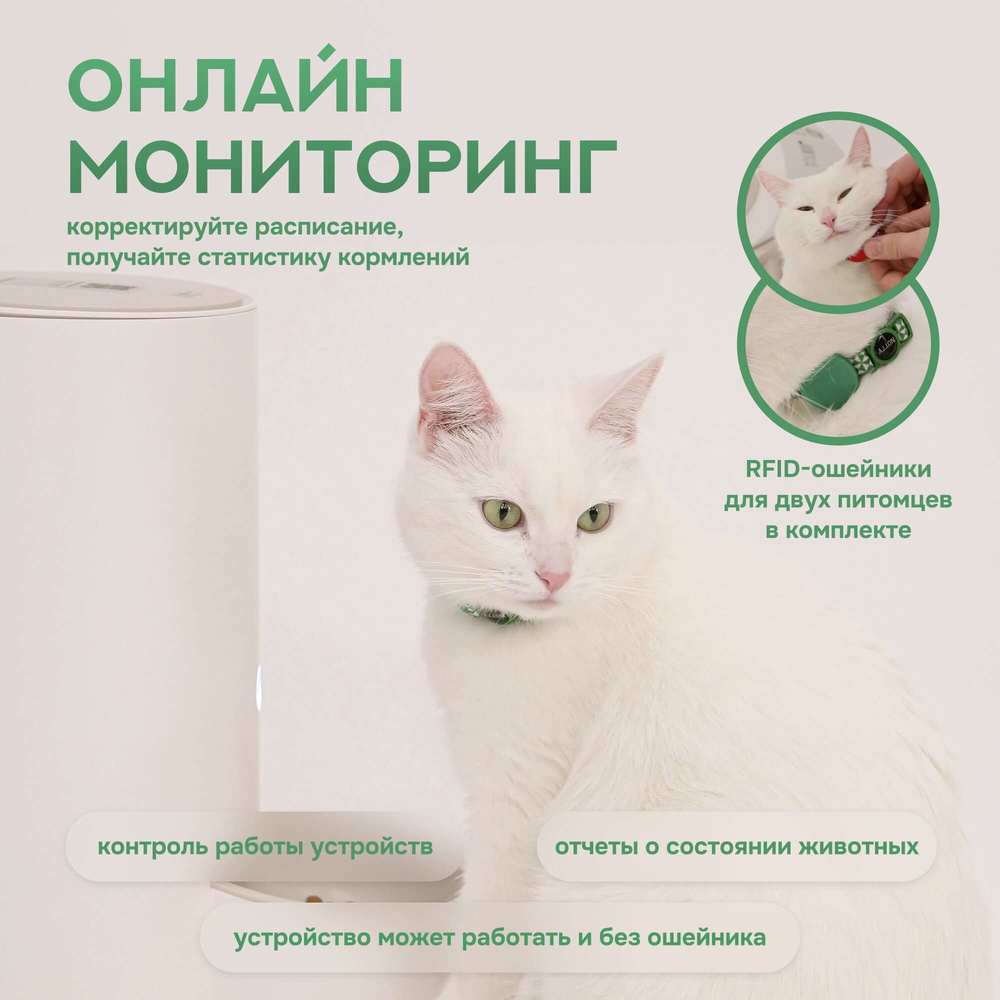 | Подробная комплектация | корпус поилки, внутренний резервуар, ошейники с RFID-чипами, крышку, фильтрующую губку, адаптер и инструкцию на русском языке |