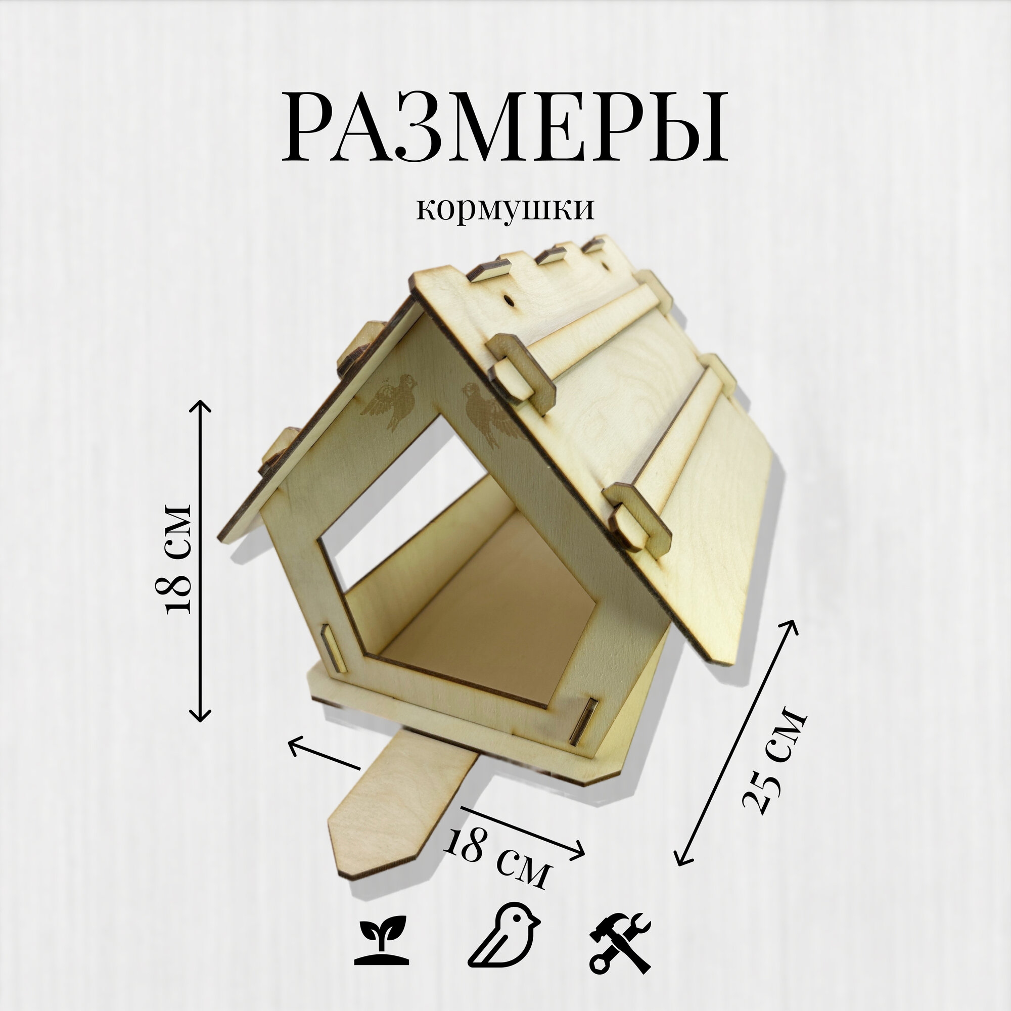 | Дополнительная информация | Деревянная прямоугольная закрытая сборная подвесная кормушка весной и летом для корма на дерево с крышей для мелких птиц и грызунов. Верёвка в комплекте. |