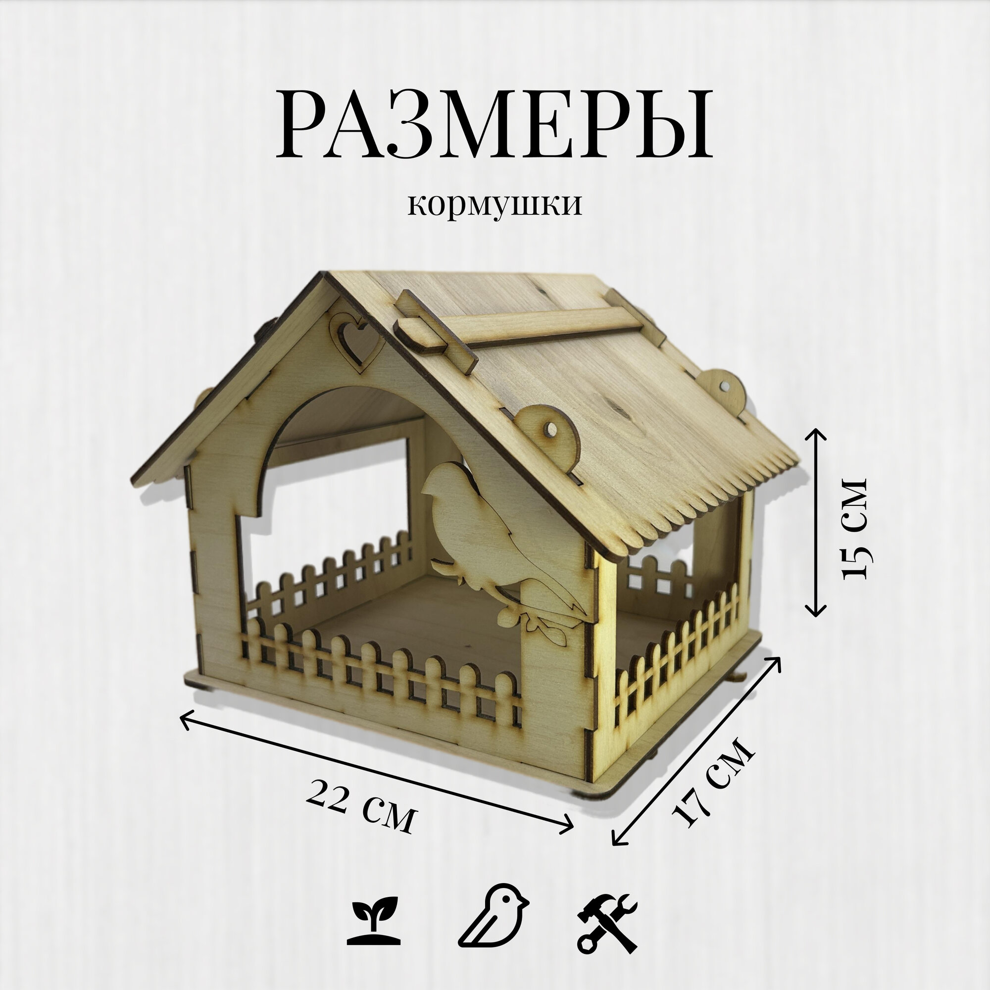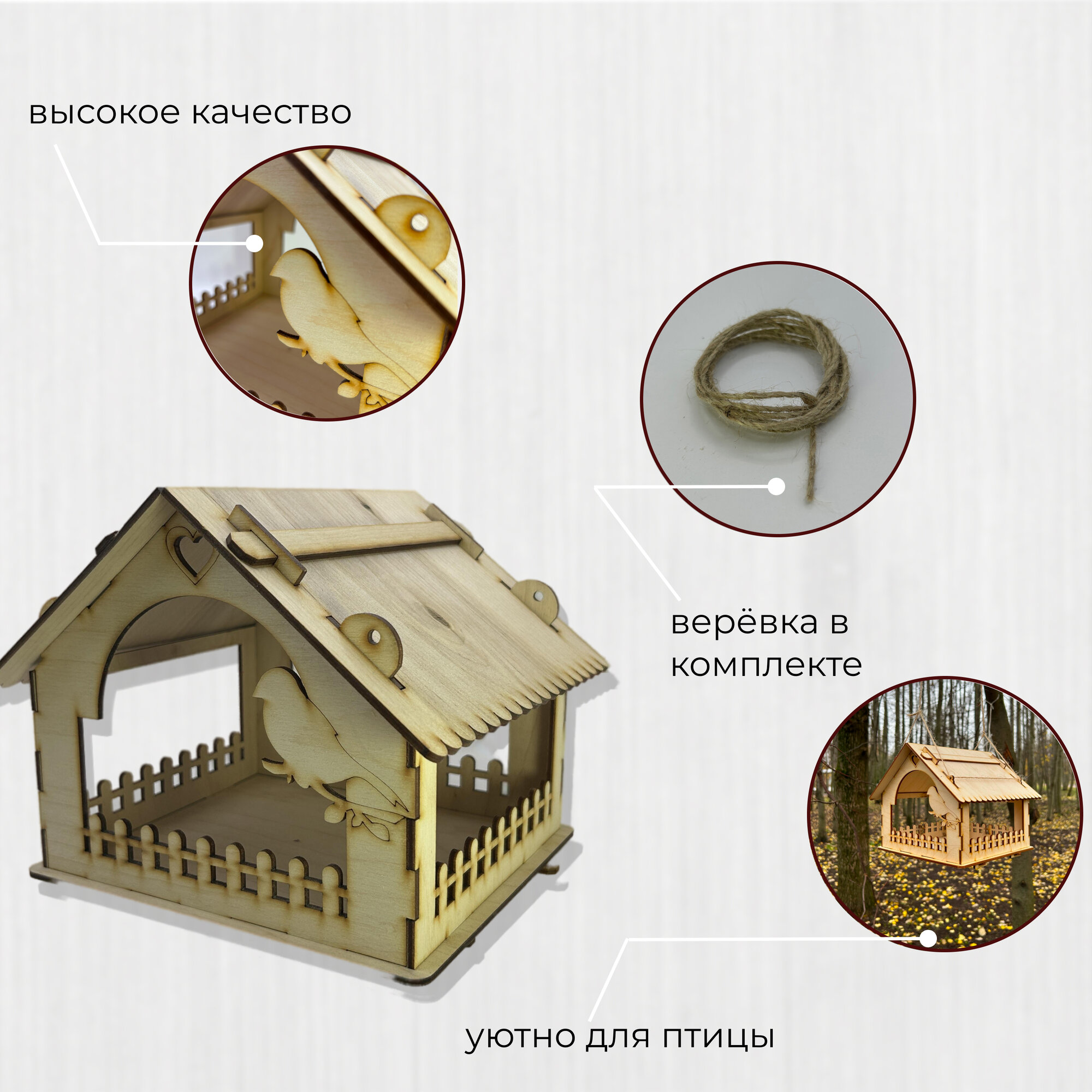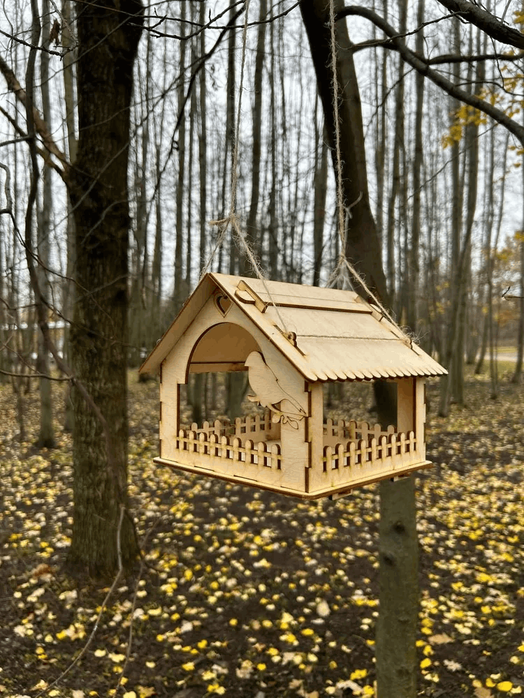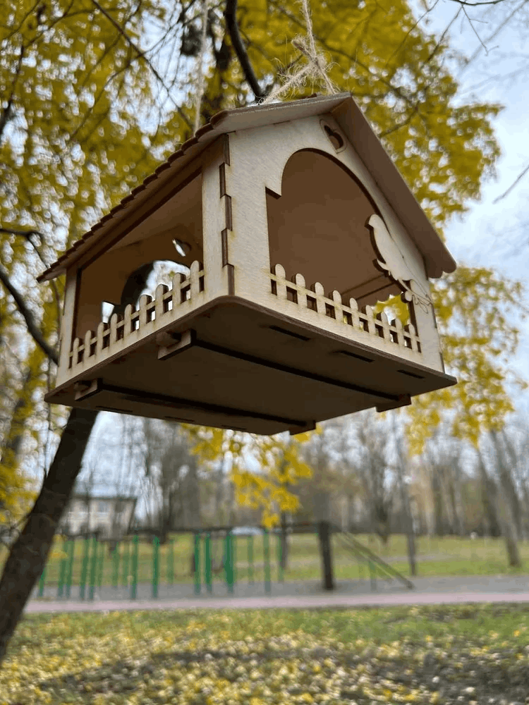 | Дополнительная информация | Деревянная прямоугольная закрытая сборная подвесная кормушка весной и летом для корма на дерево с крышей для мелких птиц и грызунов. Верёвка в комплекте. |