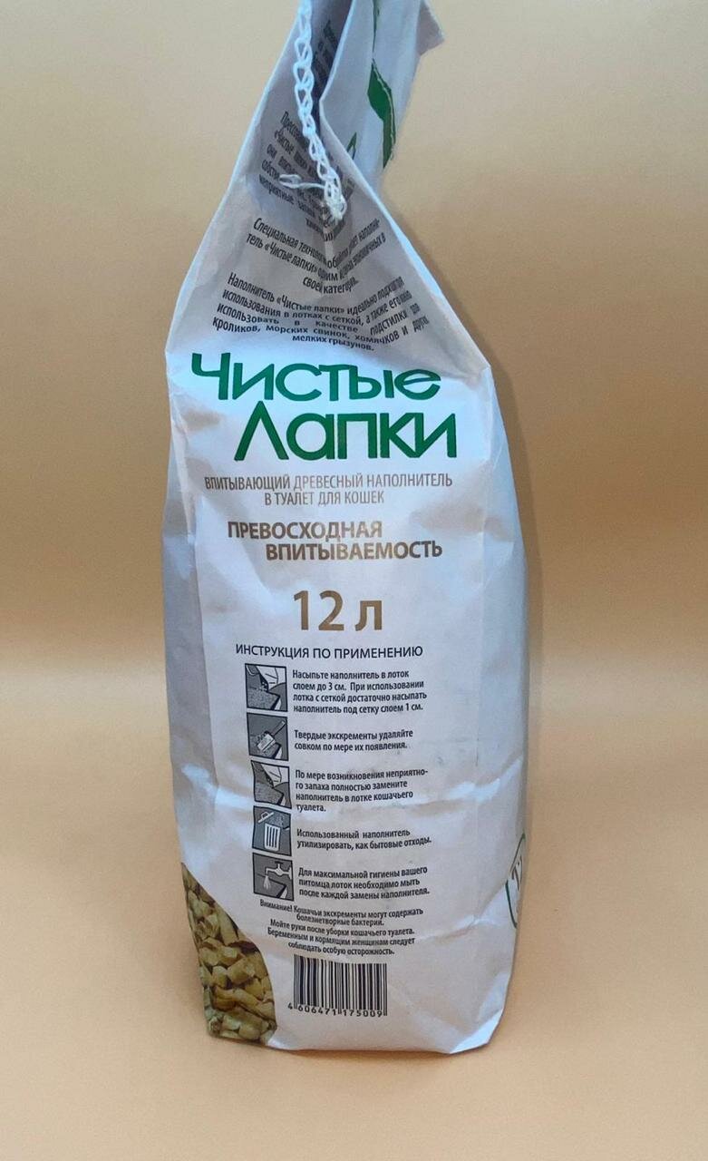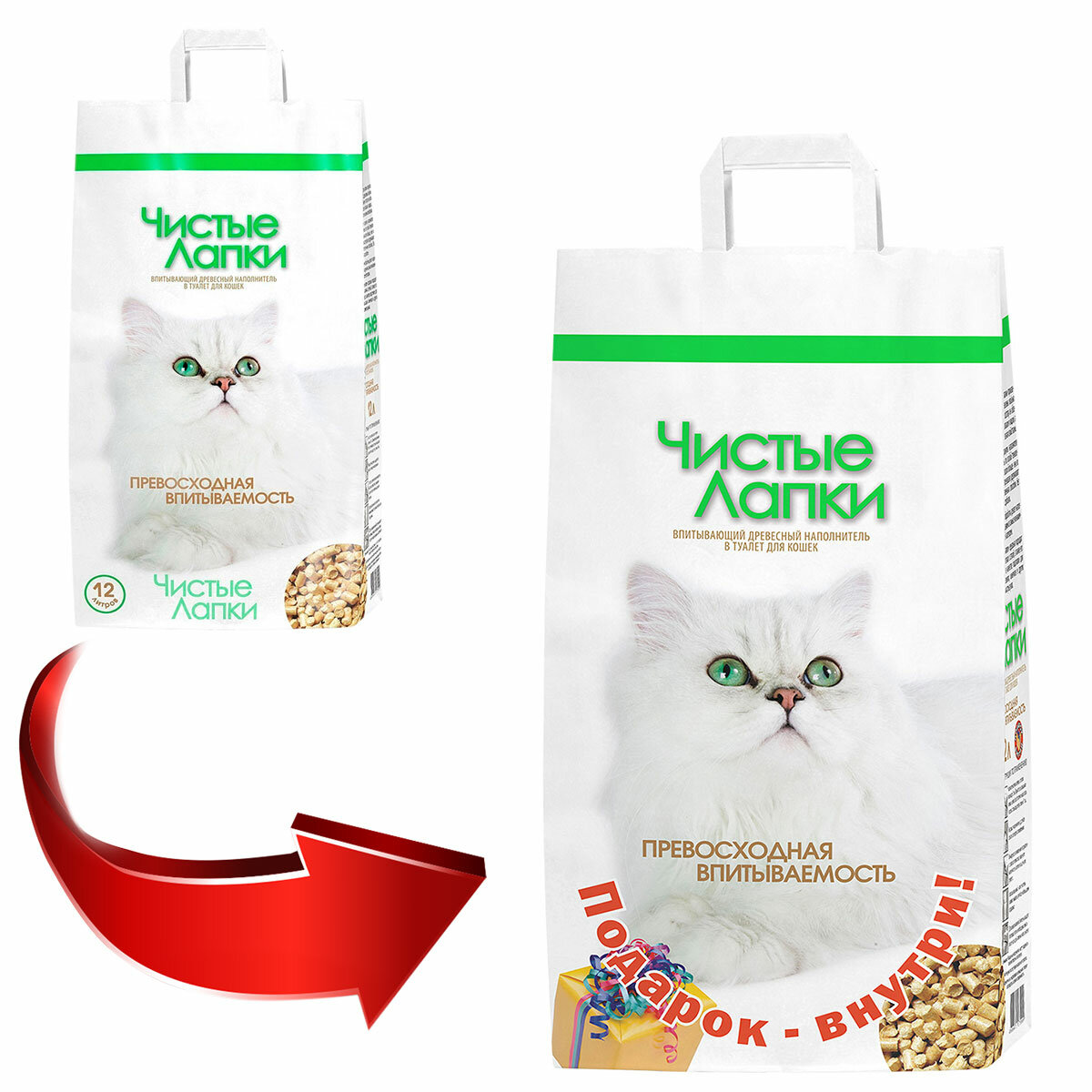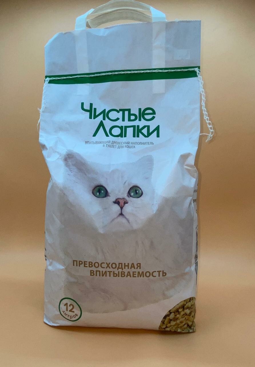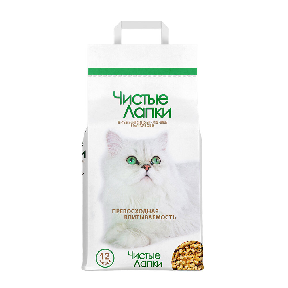 Чистые лапки – наполнитель древесный для туалета кошек (12 л)