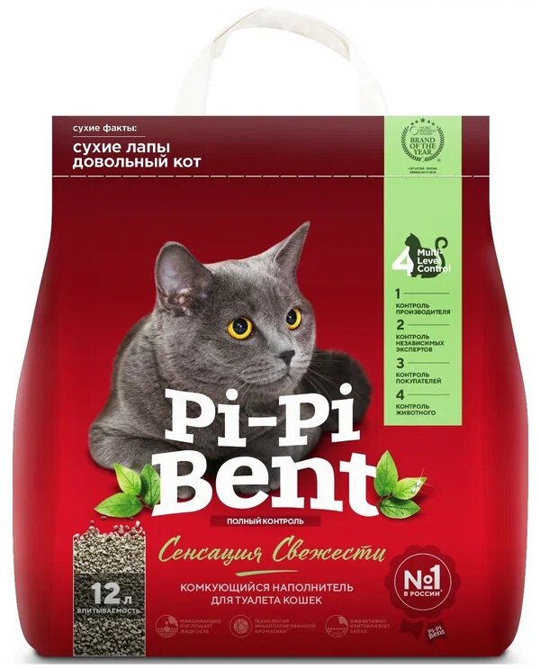 Pi-Pi-Bent Наполнитель Сенсация свежести для кошек, комкующийся, 12 л, 5 кг интересное: