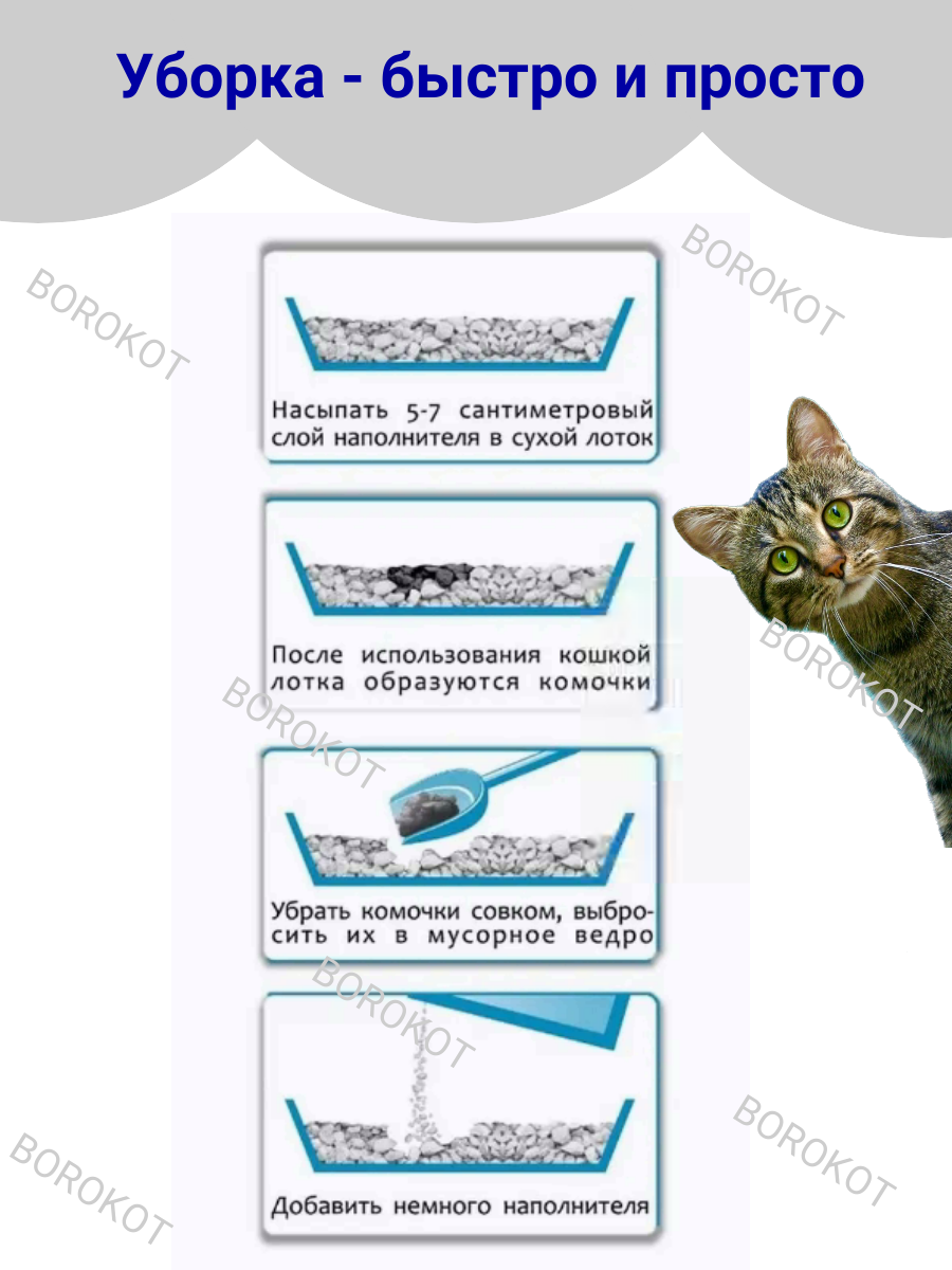 | Дополнительная информация | Наполните сухой лоток слоем наполнителя не менее 5 см . Ежедневно удаляйте комочки в мусорное ведро и добавляйте наполнитель до прежнего уровня .Полная замена не требуется |
