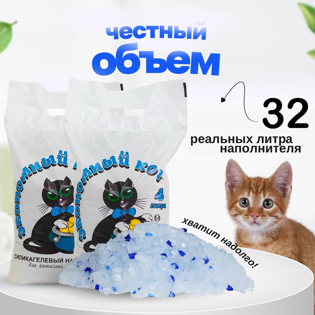 СохранитьСиликагелевый наполнитель, 32 литра, кристаллы, с голубыми гранулами "Экономный кот" интересное: