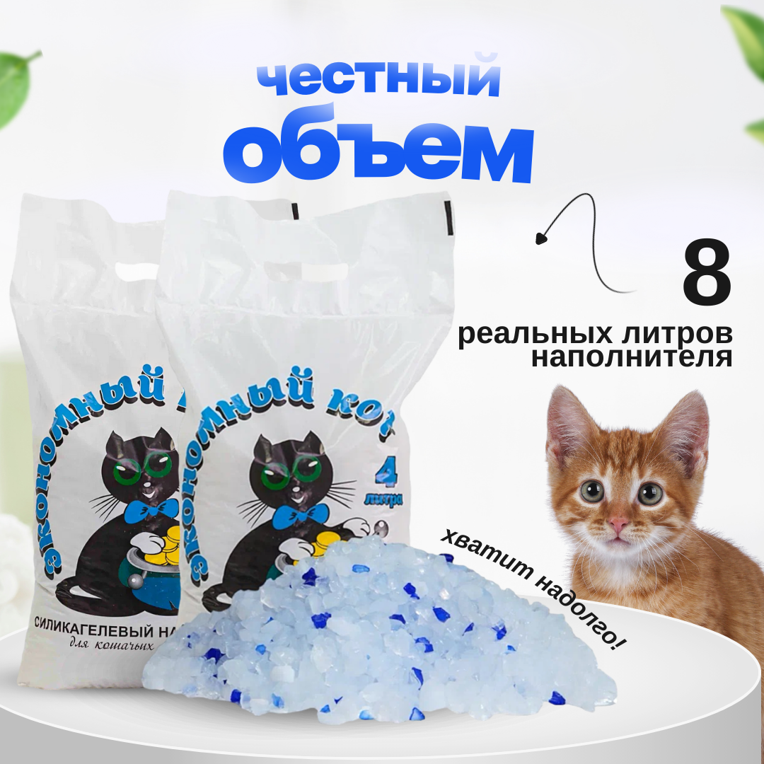 Купить Силикагелевый наполнитель, 8 литров, кристаллы, с голубыми гранулами "Экономный кот"