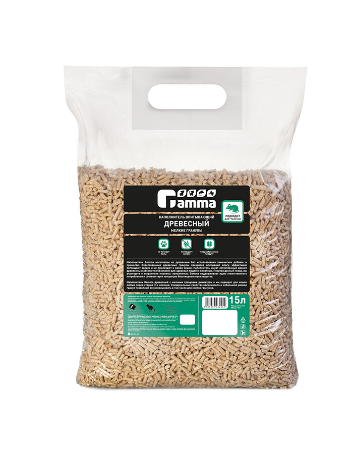 Гамма Наполнитель для кошачьих туалетов Gamma 15л, древесный впитывающий, мелкие гранулы интересное: