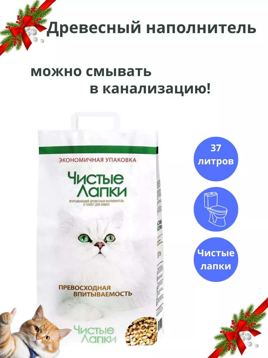 Наполнитель Чистые лапки д/кошек древесный 37л 13,5кг интересное:
