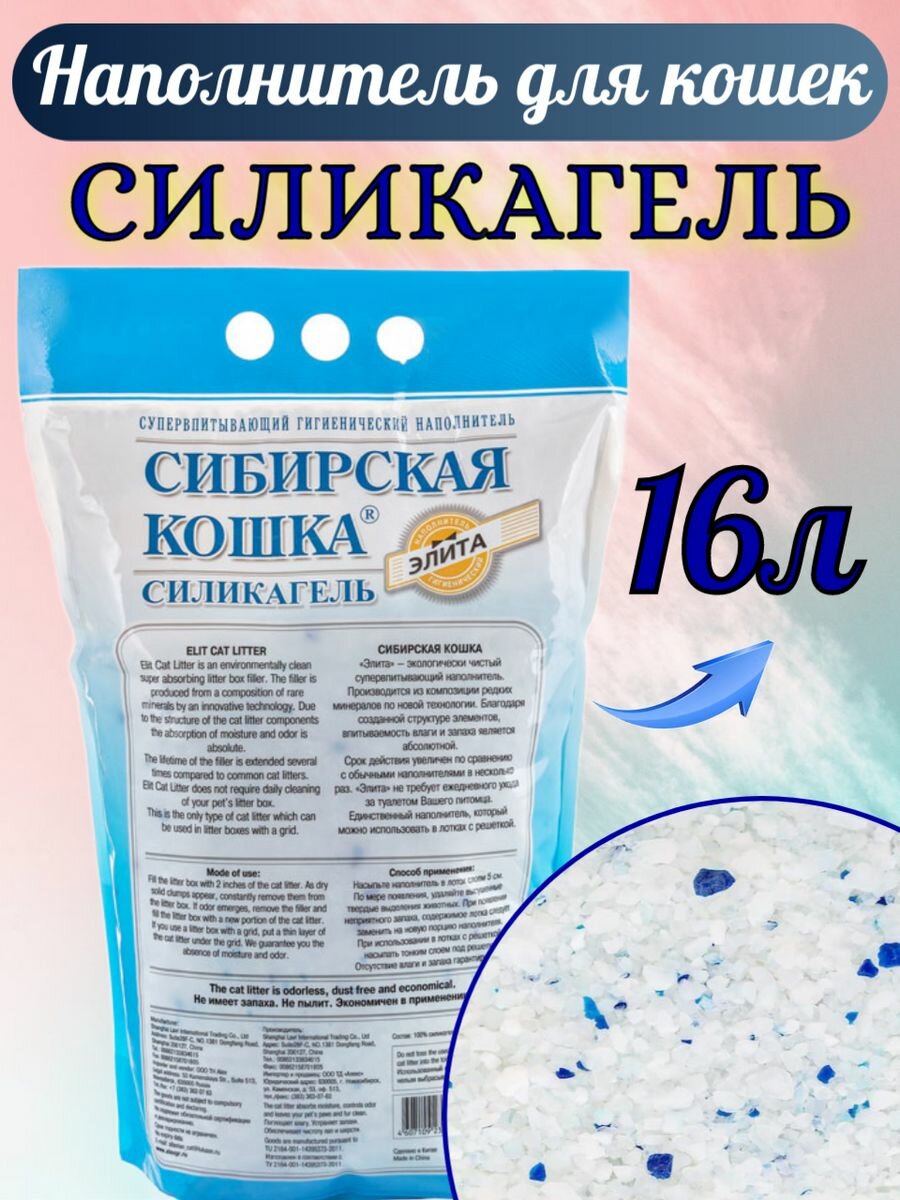 Наполнитель для кошачьего туалета 8л сибирская кошка силикагелевый Элита голубые гранулы