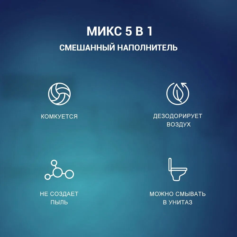| Особенности | антибактериальный / биоразлагаемый / возможность утилизации в канализации / гипоаллергенный / гранулированный / контроль запаха / смываемый |