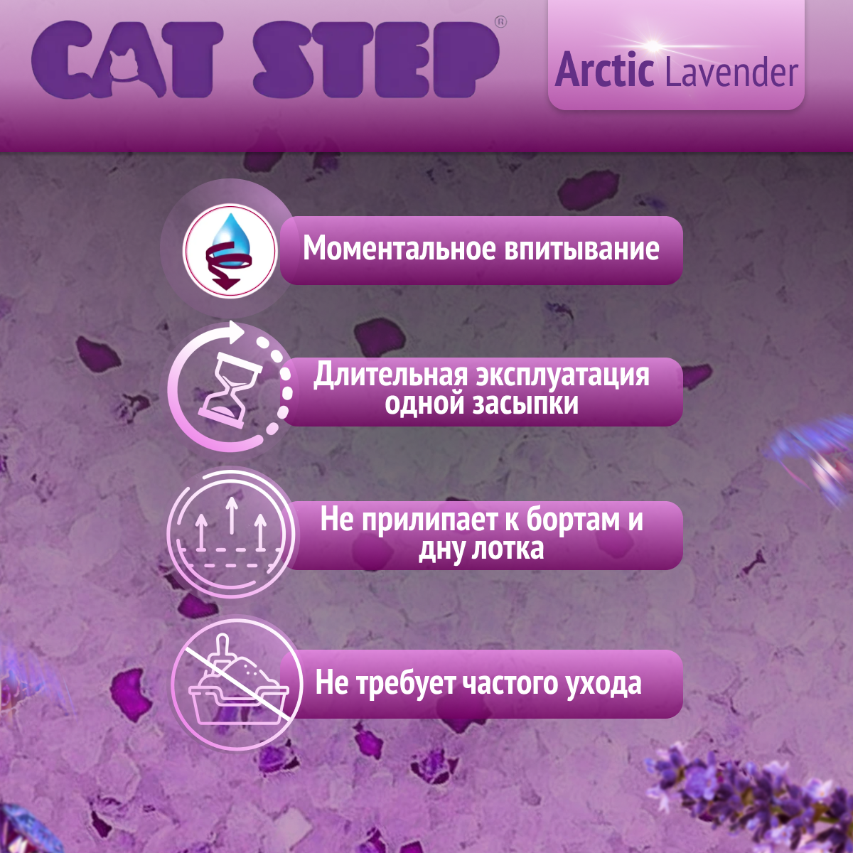 Cat Step Arctic Lavеnder наполнитель силикагелевый впитывающий с ароматом лаванды 3,3 кг. 7,6 л.