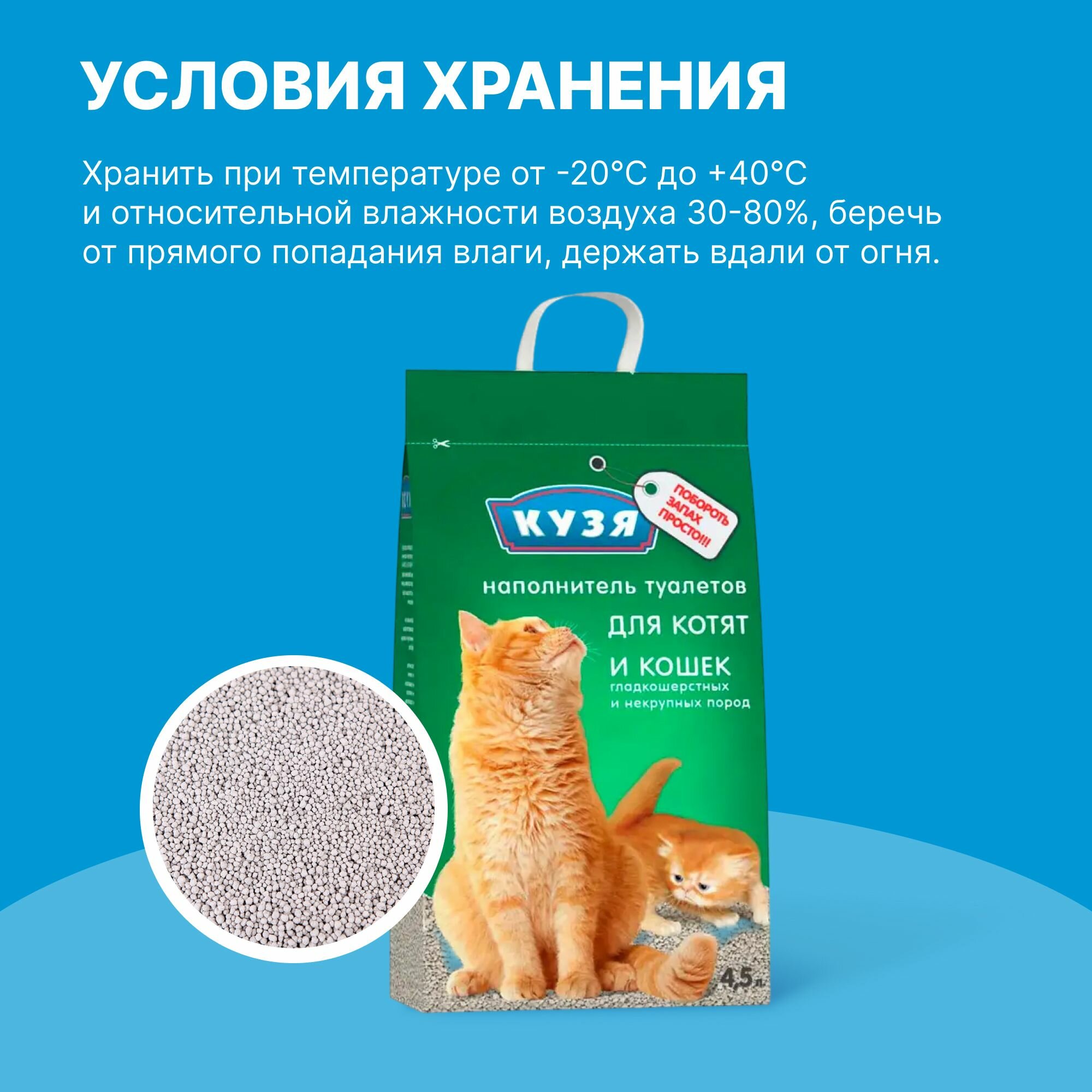 Наполнитель для лотка впитывающий, Кузя, для котят и кошек, 4,5 л (2,4 кг) интересное: