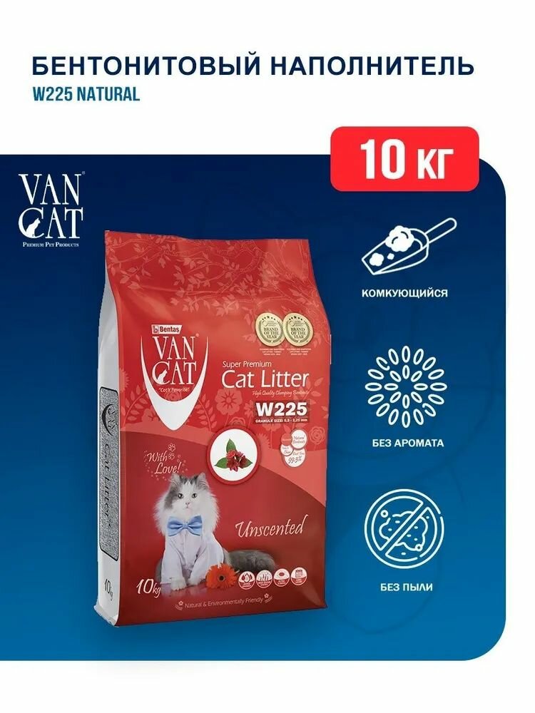 Van Cat W225 Natural комкующийся наполнитель для кошек, без пыли, натуральный - 10 кг интересное: