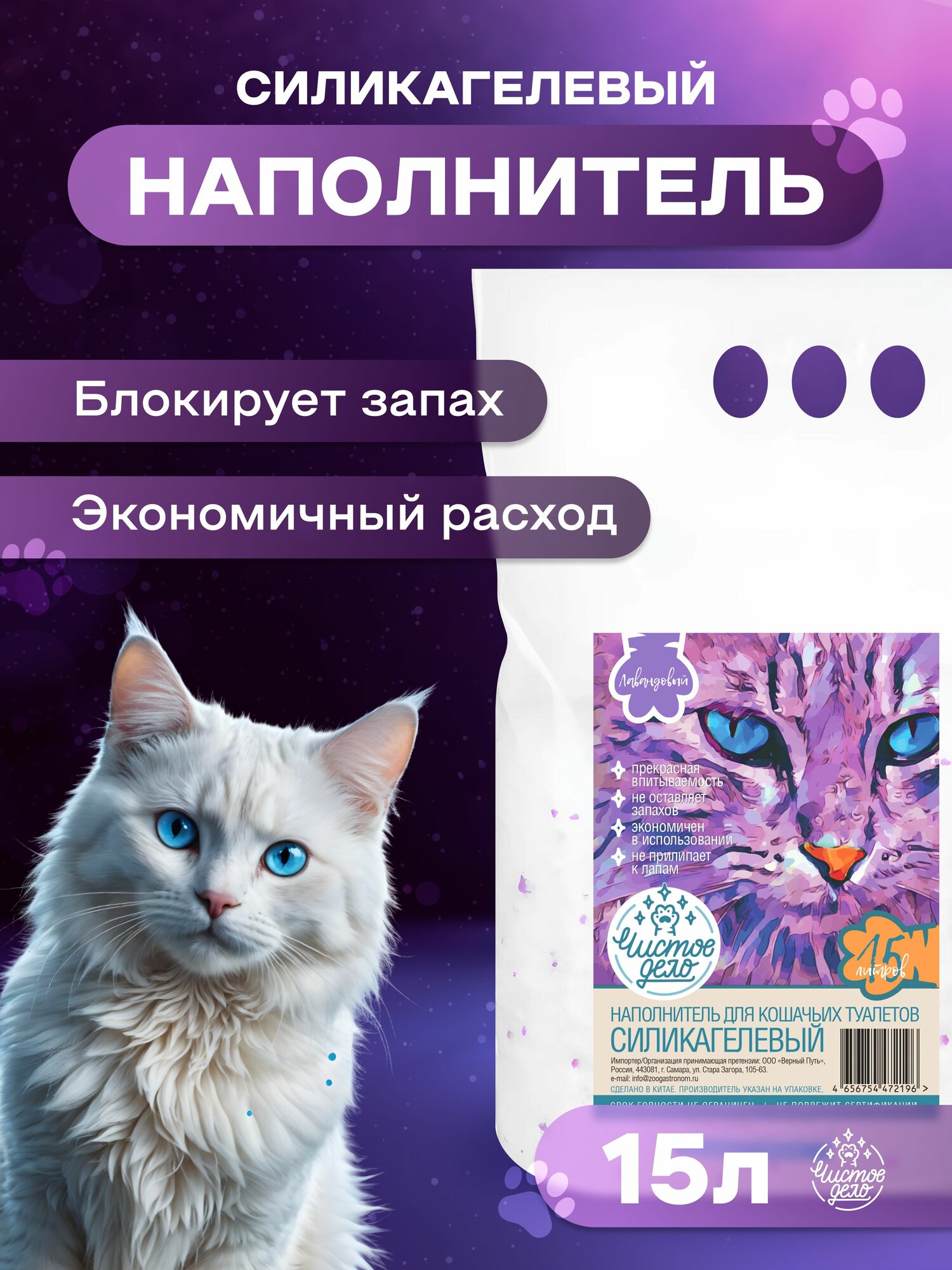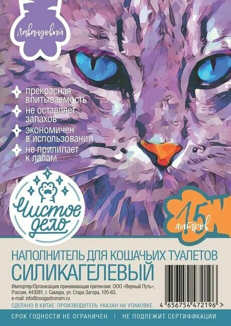 Купить Наполнитель для кошачьего туалета Чистое дело, силикагелевый, 15л (лавандовый)