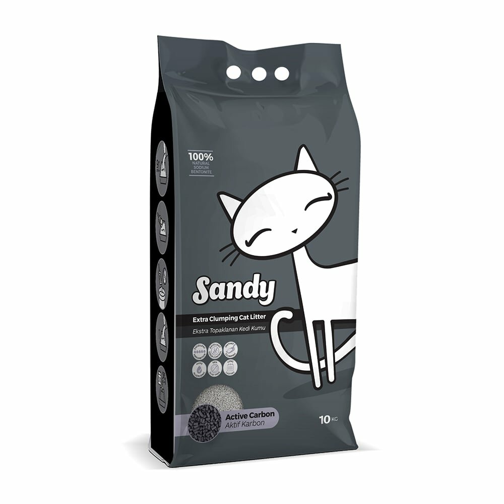 Наполнитель для кошек Sandy Active Carbon комкующийся, с активированным углем 10 кг