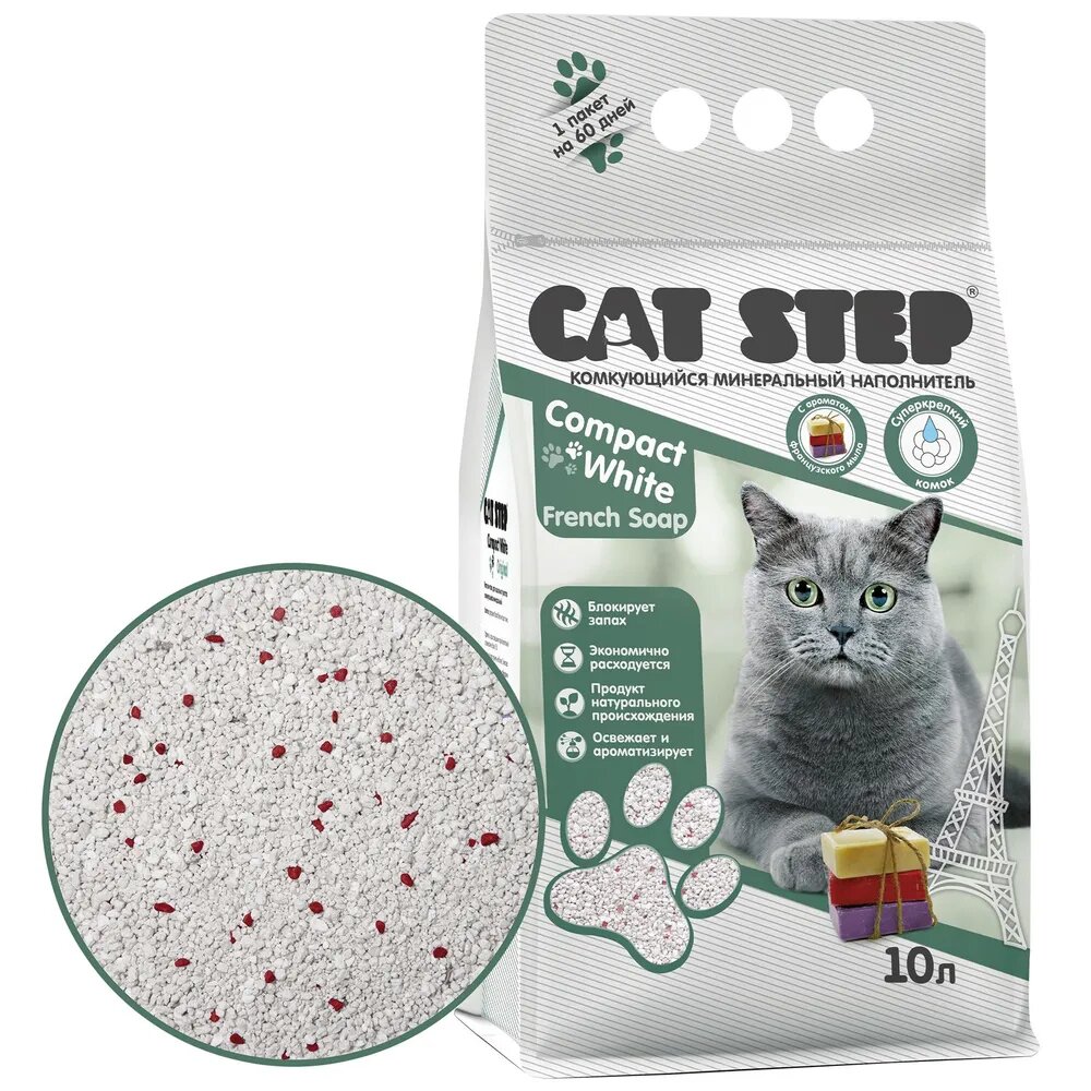 Купить Наполнитель для кошек Cat Step Compact White French Soap, комкующийся, минеральный 10 л