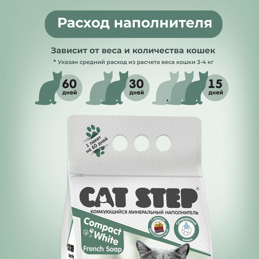 Наполнитель для кошек Cat Step Compact White French Soap, комкующийся, минеральный 5 л